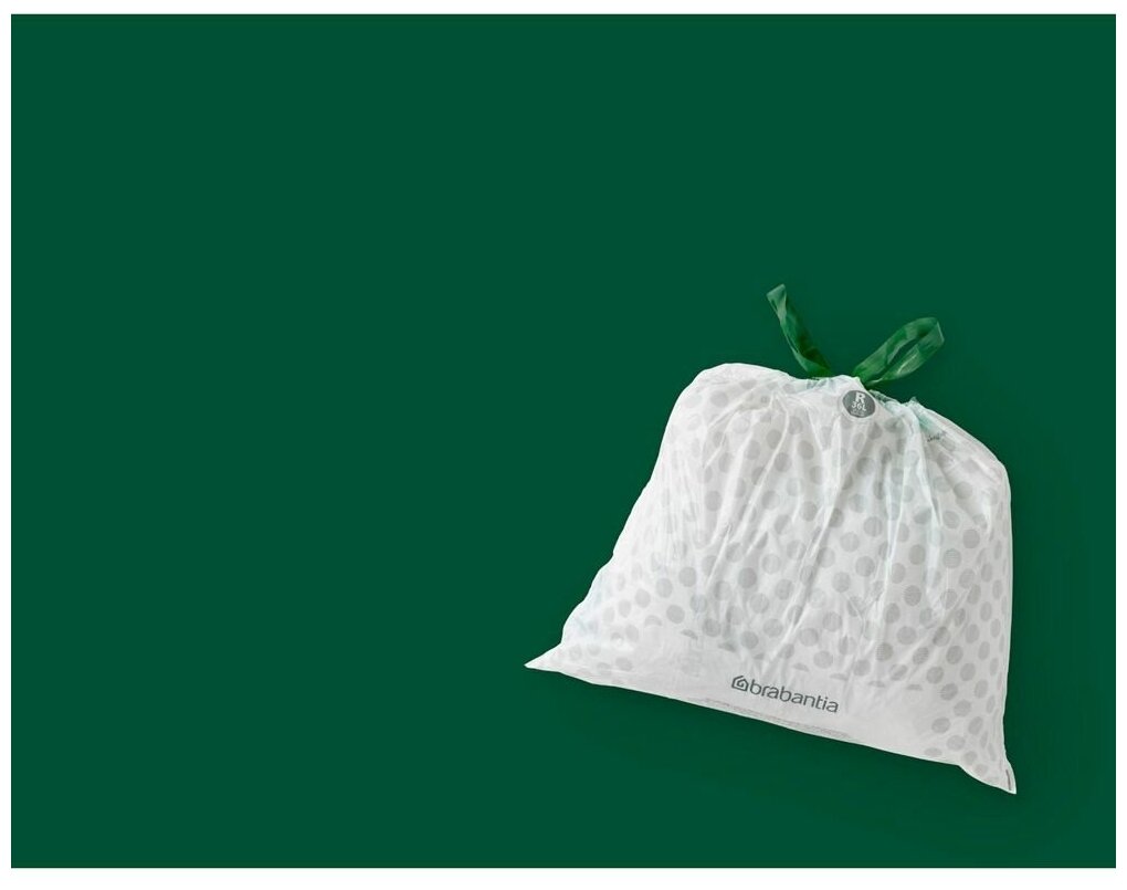 Удобно и быстро вкладываются и достаются из бака. Эстетичный вид – идеально подходят по размеру к мусорным бакам Brabantia, мешок не выступает наружу. Уникальная цветовая маркировка позволяет выбрать мешки нужного размера. Вентиляционные отверстия для удобства вкладывания в бак. Изготовлены из особо прочного полиэтилена (HDPE). Легко затягиваются и переносятся – специальная лента для стягивания горловины. Упаковка-диспенсер: 40 мешков.