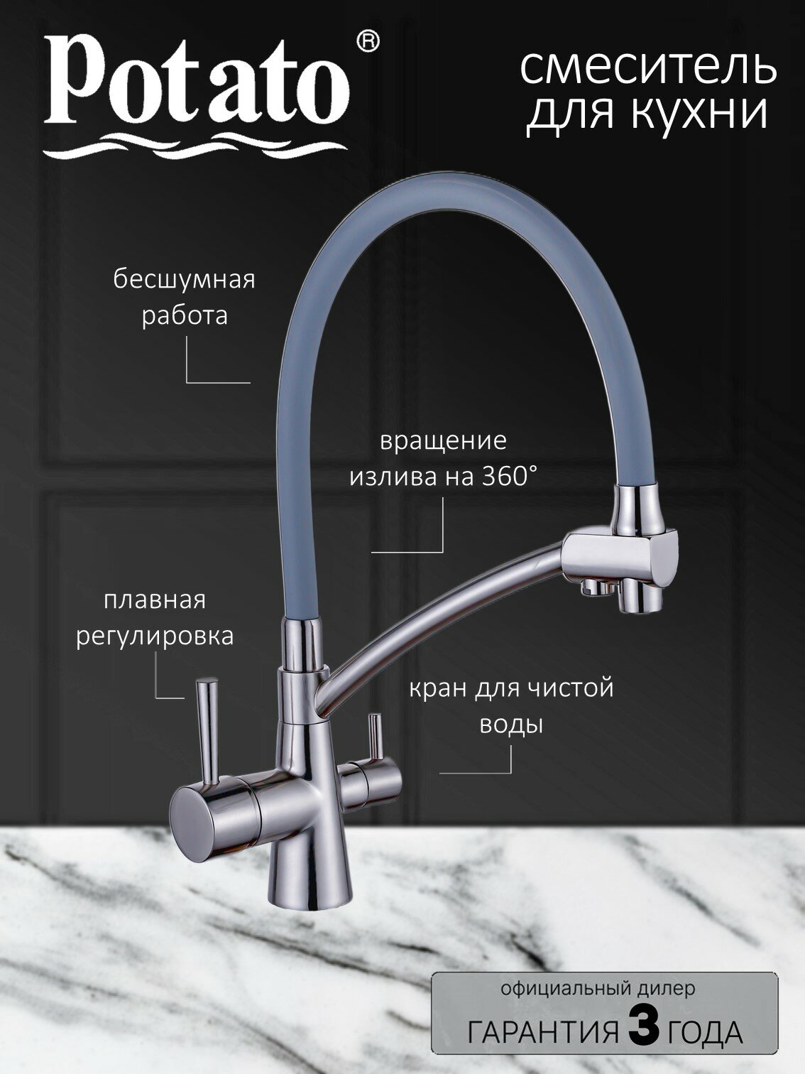 Смеситель для кухни Potato P4077 P4077-1 сатин