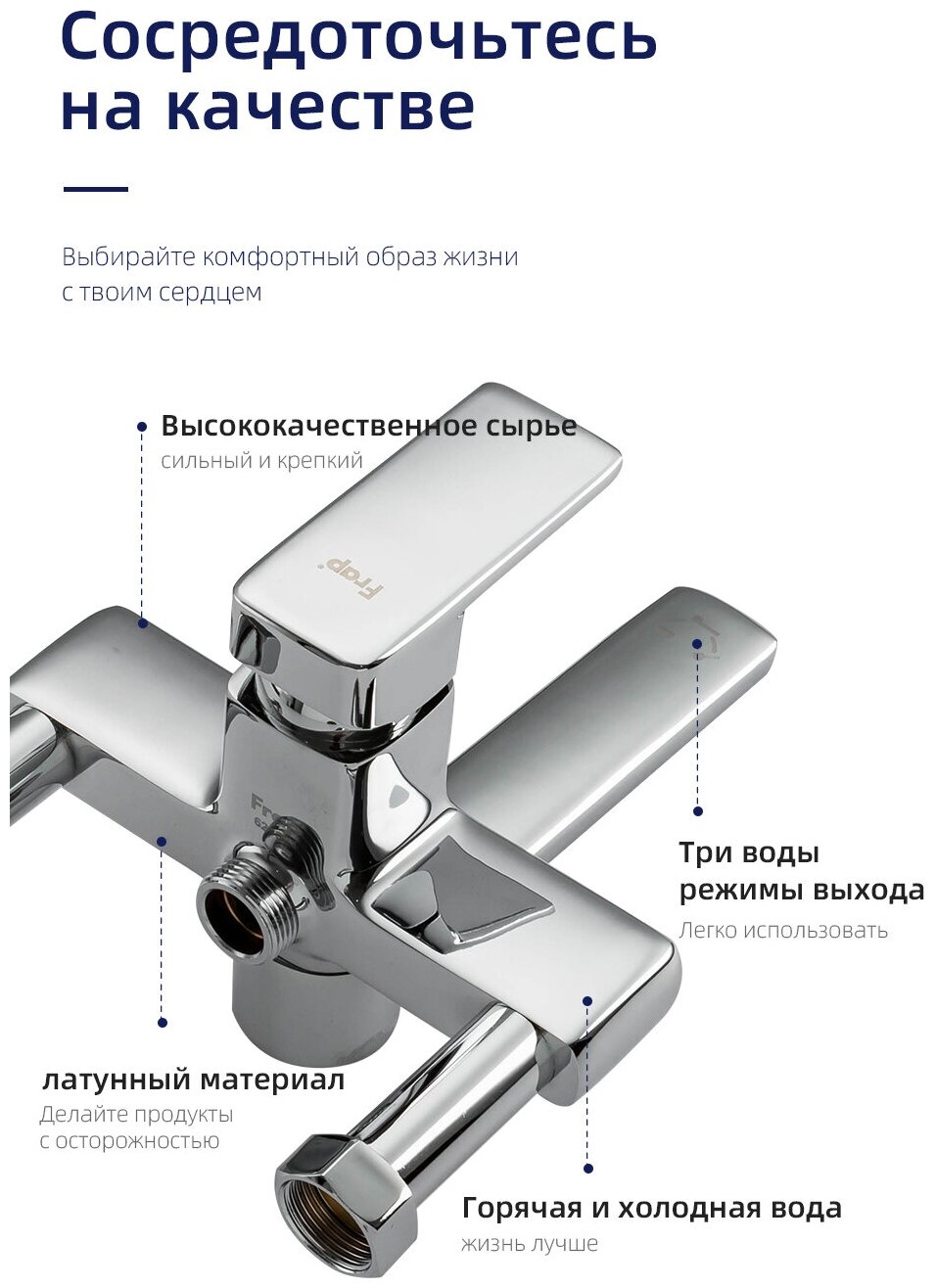 Смесители FRAP представлены в современном и классическом дизайне. Большое разнообразие, свыше 900-от моделей, позволяет без проблем подобрать нужный для вас смеситель. А так же обеспечит Вас надежным, проверенным временем качеством этой продукции. Разнообразие цветов и материала из которого они изготовлены, удовлетворят даже самого строгого покупателя. Эксклюзивные дизайны помогут воплотить в мечту самые смелые идеи. Обладает стойкостью к воздействию химических веществ и стойкостью к температурным перепадам. Аэратор в составе смесителя обеспечивает равномерный поток воды, помогает экономить воду, уменьшает количество брызг, выветривает хлор. Комплектация: Керамический картридж 35 мм. Аксессуары в комплекте: Аксессуары в комплекте: Шланг 1,5 м, настенное поворотное крепление, 1-функциональная лейка, эксцентрики, отражатели, штанга, лейка тропического душа.