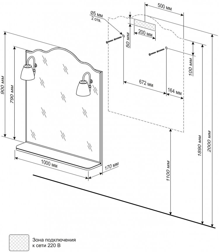 | Комплектация | крепеж; полочка; проводка; светильник |