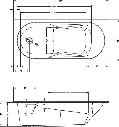 Ванна акриловая Riho Lazy B083001005 180х80, левая