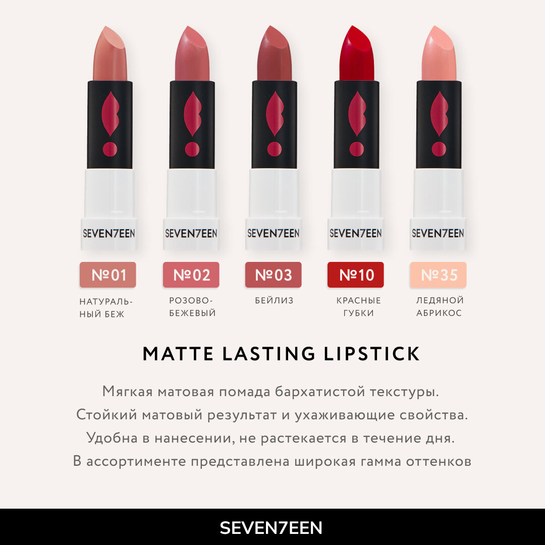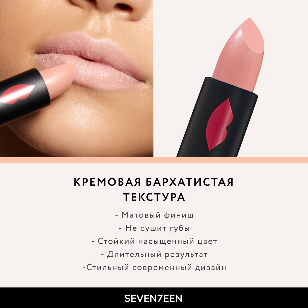 | Полное наименование | Помада для губ Seventeen Matte Lasting Lipstick SPF 15 тон 29 |