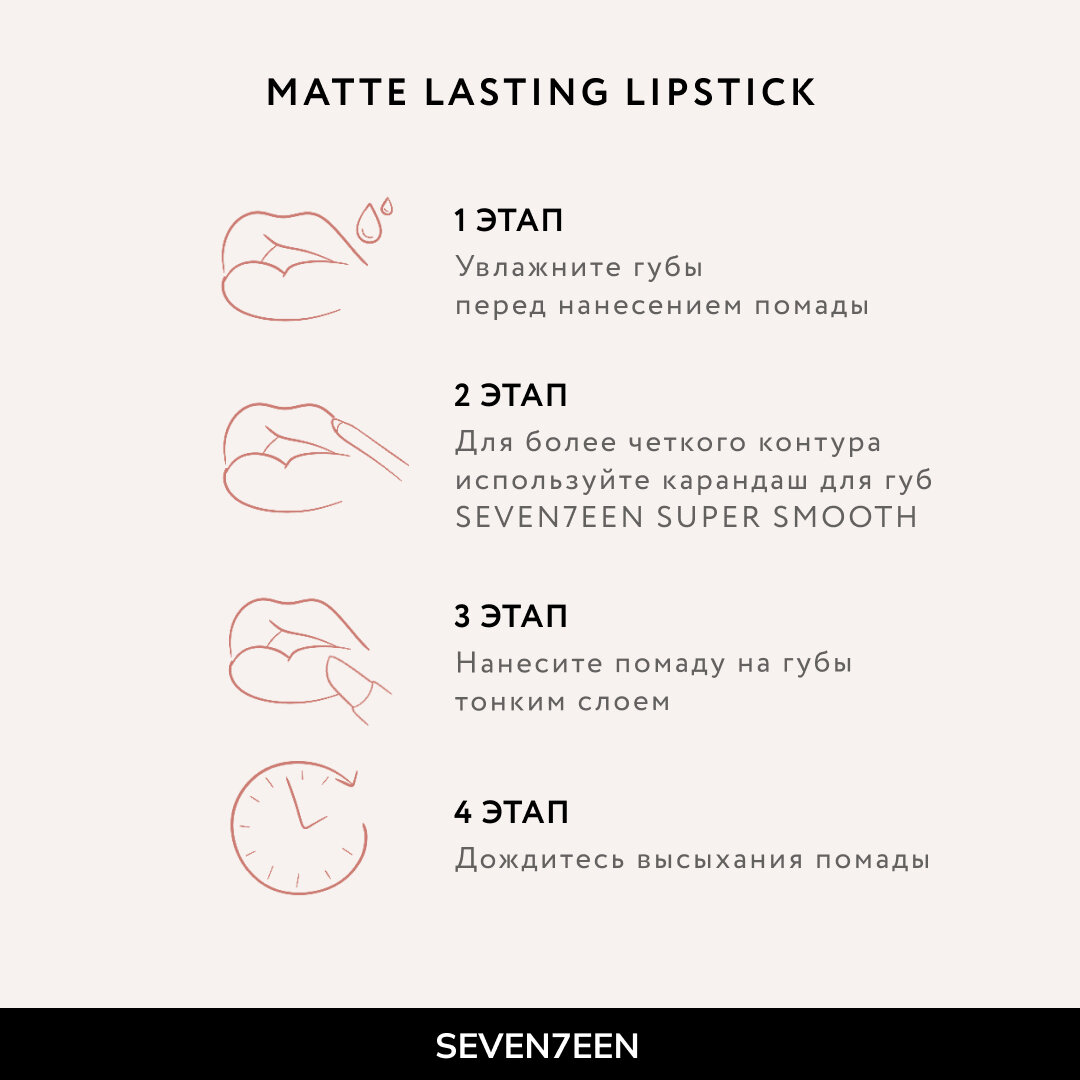 | Полное наименование | Помада для губ Seventeen Matte Lasting Lipstick SPF 15 тон 33 |