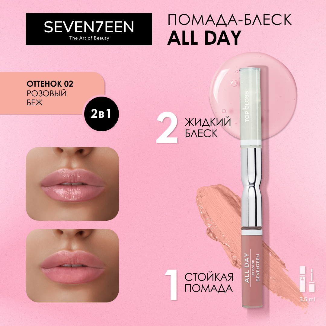 | Полное наименование | Seventeen - Жидкая стойкая помада-блеск All day lip color & top gloss, 28 сиена |
