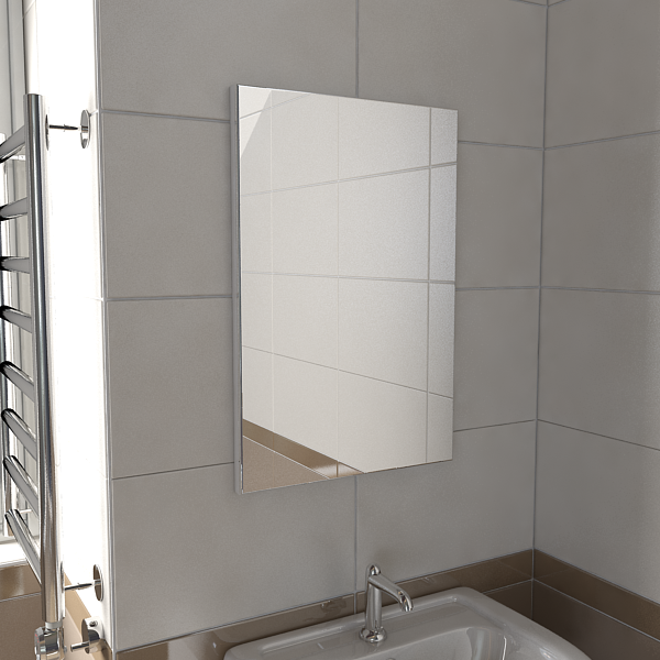 Влагостойкое зеркало на подложке из ЛДСП 16 мм обработанное кромкой ПВХ. Без света. Поставляется в собраном виде.
