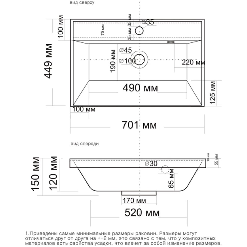 Array форма раковины Grossman оптимальных размеров: шириной 70.1 см, глубиной 44.9 см, высотой 15 см, способствует комфорту использования и монтажа. Современный стиль, в котором выполнена раковина Grossman 4627173210171 передается во всех элементах данной модели. Материалом, из которого произведена раковина 4627173210171 является искусственный мрамор, данный материал отличается максимально гладкой поверхностью, и абсолютной гигиениченостью.