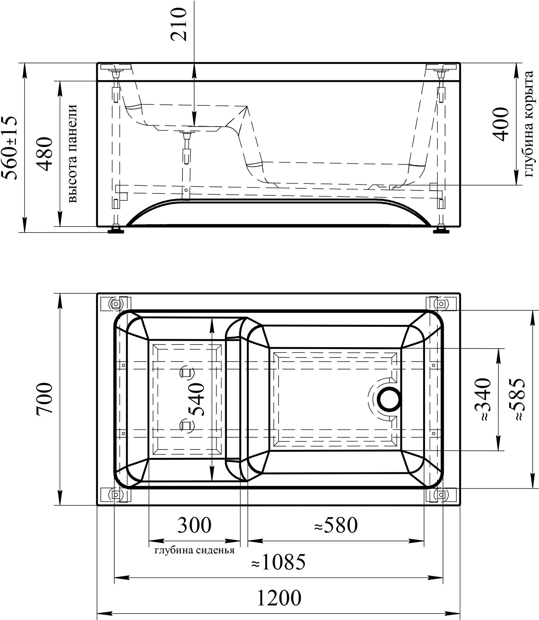 | Особенности | влагостойкие панели; регулируемые по высоте ножки; выемка для ног |