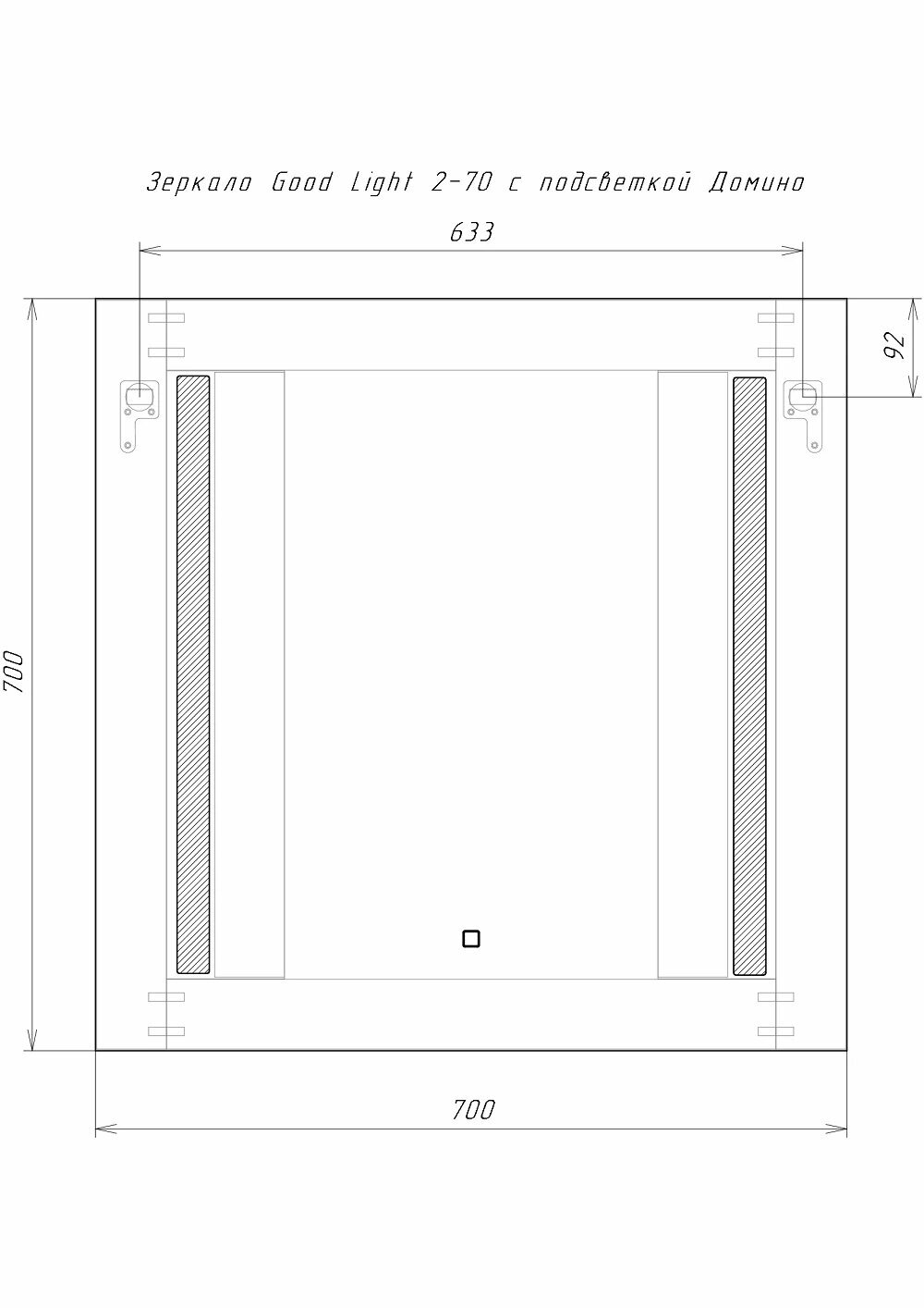 Серия зеркал GOOD LIGHT от российской марки ДОМИНО визуально расширит и увеличит пространство в помещении. Зеркальное полотно AGC отличается высокими антикоррозионными свойствами, повышенной устойчивостью к абразивным средствам бытовой химии, и длительной эксплуатацией. Зеркало 70 см в ширину с подсветкой. Сенсорный выключатель находится на зеркале. Светодиодная подсветка отличается низким энергопотреблением, высокой безопасностью (светодиоды запитаны напряжением 12 В) и долгим сроком службы – не менее 50 000 часов бесперебойной работы.