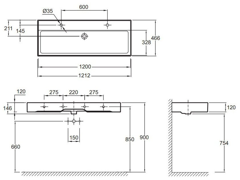 - Размеры (ШхВхД): 1212х146х466 мм.