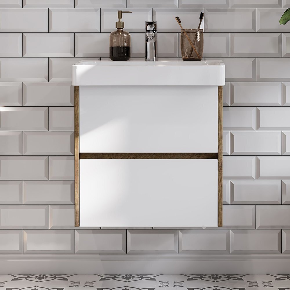 Тумба AQUATON Сканди 55 1A251701SDB20 выполнена в популярном минималистичном скандинавском стиле. Корпус тумбы выполнен из влагостойкой ЛДСП в декоре натурального дерева, а фасады в белой глянцевой покраске. Конструктивно тумба состоит из 2 вместительных ящиков, установленных на направляющие с интегрированной системой push-to-open для комфортного использования. На тумбе нет выступающих деталей и фурнитуры, открытие ящиков реализовано нажатием на фасад.Направляющие нижнего крепежа обеспечивают жёсткое и надежное крепление ящиков, а встроенные доводчики гарантируют их бесшумное и плавное закрывание. Тумба комплектуется белоснежной раковиной Адриана от бренда Santek (приобретается отдельно). Благодаря стильному дизайну тумба впишется в любой интерьер ванной комнаты!Во избежание ухудшения эксплуатационных свойств изделия при необходимости в достаточной степени проветривайте помещение. Не рекомендуется устанавливать изделие ближе 1 метра от отопительных приборов, радиаторов водяного отопления, неизолированных труб и т.д