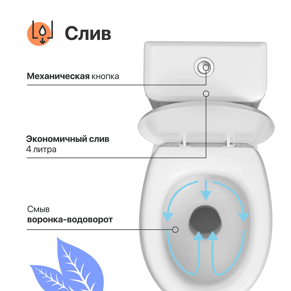ВКоробке | Чаша унитаза - 1 шт. Бачок - 1 шт. Крышка-сиденье - 1 шт. Инструкция - 1 шт. |
