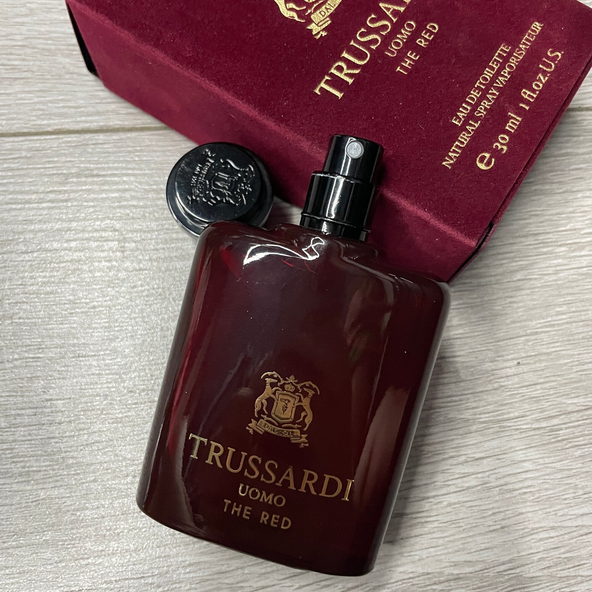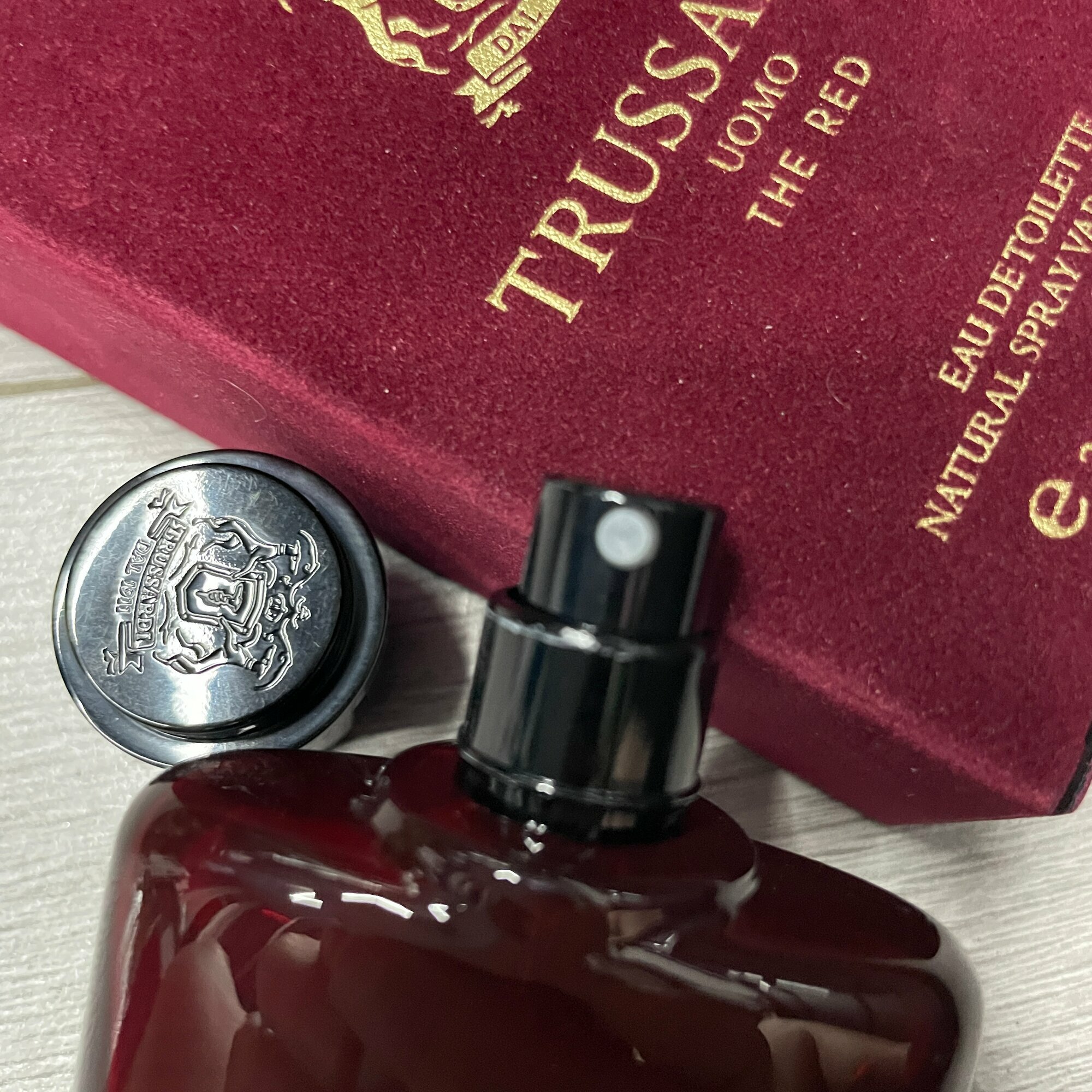 Парфюмерный бренд Trussardi представил в сентябре 2016-го года свой очередной аромат Trussardi Uomo The Red. Композиция анонсирована как изысканный аромат итальянского стиля и элегантности. Trussardi Uomo The Red входит в состав той же парфюмерной серии, что и его предшественники - Trussardi Uomo 2011-го года, и Trussardi Black Extreme 2014-го. Ароматические - пряные начальные нотки аромата включают в себя чарующие запахи лимона, горьковатого мускатного ореха, пьянящего коньяка и гальбанума.