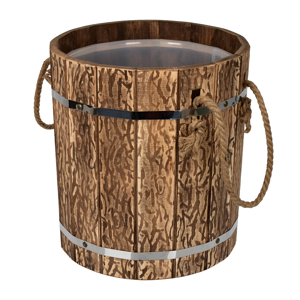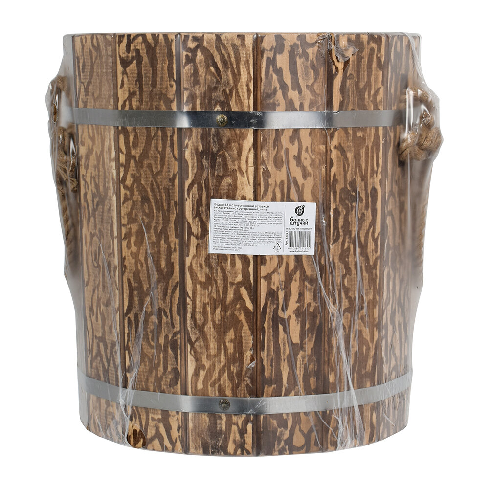 Ведро 18 л. с пластиковой вставкой (искусственно состаренное), липа, "Банные штучки" в терм./1Бондарные изделия выполненные из липы, прослужат многие годы. Древесина липы является основным материалом при изготовлении бондарных изделий, поскольку она не только обладает уникальными целебными свойствами, но и способна сохранять комфортную температуру в самой жаркой парной.