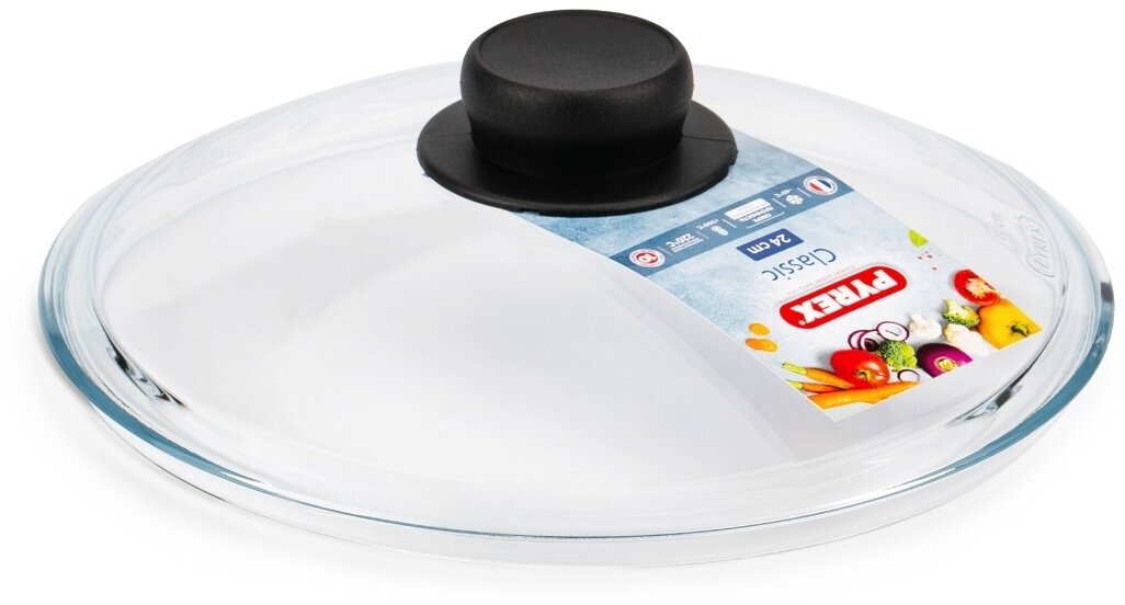 | Прочие особенности и свойства | Крышка Pyrex B24CL00 изготовлена из высококачественного закалённого стекла, выдерживающего большие нагрузки и сильные перепады температуры. Её гладкая поверхность легко очищается от жира и копоти. Отсутствие металлического ободка делает её безопасной для антипригарного покрытия и предотвращает накопление остатков пищи в труднодоступных местах. Крышка снабжена ненагревающейся ручкой из прочного пластика. Она подходит для использования в микроволновой печи и для очистки в посудомоечной машине. |
