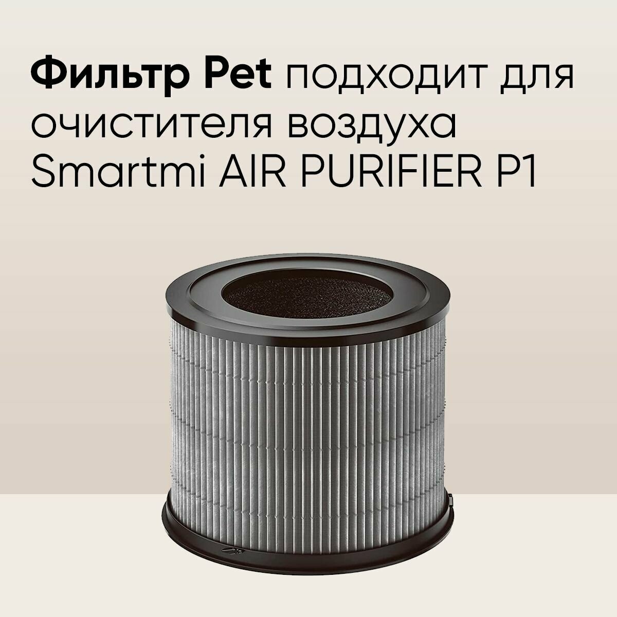 Фильтр для очистителя воздуха (аллергия на домашних животных)HEPA-фильтр Smartmi Air Purifier P1 Filter (Pet Allergy) подходит для очистителя воздуха Smartmi P1, предназначен для поглощения различных запахов из атмосферы, подходит для людей, у которых есть домашние животные, или для тех, кто хочет избавиться от запахов приготовления пищи, дыма или смога.Четыре слоя Фильтра H13 True HEPA для эффективно очистки воздуха:1. Предварительный фильтр для крупных частиц2. Фильтр H13 True HEPA (воздушный фильтр HEPA) эффективно улавливает 99,97% мелких частиц в воздухе3. Угольный фильтр поглощает неприятные запахи4. Внутренний фильтр работает как резервный для лучшей поддержки фильтрацииС фильтром HEPA-фильтр Smartmi Air Purifier P1 Filter (Pet Allergy) вы сможете избавиться от таких неприятностей как:неприятные запахи (приготовления пищи, домашних животных, сигаретного дыма, смога и тд)пыль (волосы, волокна, перхоть домашних животных, шерсть)бактерии и грибкимелкие частицы в воздухе, пыль и PM2,5;химикаты.Простая замена фильтра: удалить старый фильтр для очистителя воздуха и заменить его новым довольно просто. Просто крути и тяни. Это не займет у вас больше 1 минуты!