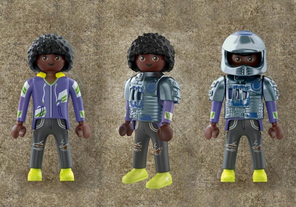Оснащенный работающим пистолетом с защитной сеткой, съемной броней, фигурка может ездить верхом на трицератопсе. Рекомендуется детям от 5 лет. Конструктор изготовлен из высококачественного пластика. Детали прочно соединяются между собой, а при игре не распадаются. При изготовлении использовались яркие нетоксичные красители. Игрушка не имеет запаха и абсолютно гипоаллергенна. Каждый родитель, покупая наборы Playmobil, может быть уверен в их безопасности.