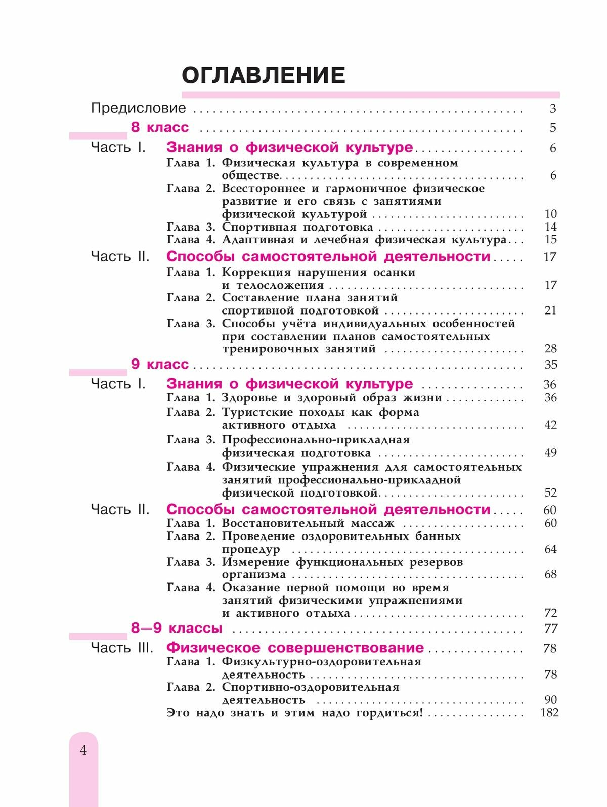 Учебник рассчитан на два года обучения. Для каждого класса представлены темы двух частей программы: "Знания о физической культуре" и "Способы самостоятельной деятельности". Материал третьей части "Физическое совершенствование" дан для двух классов вместе.