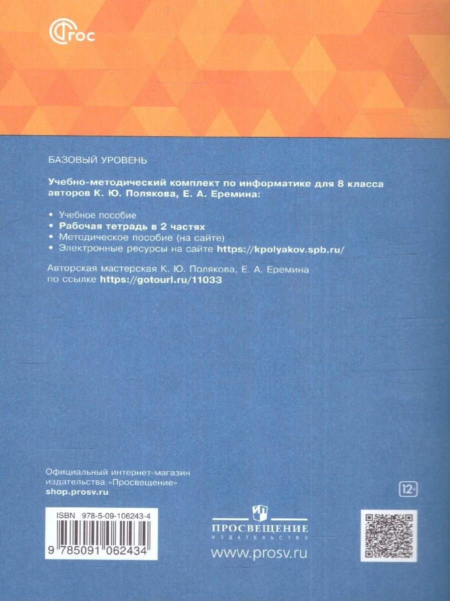 Информатика. 8 класс. Рабочая тетрадь. В 2-х частях. ФГОС (Поляков Константин Юрьевич, Еремин Евгений Александрович); Просвещение, 2023