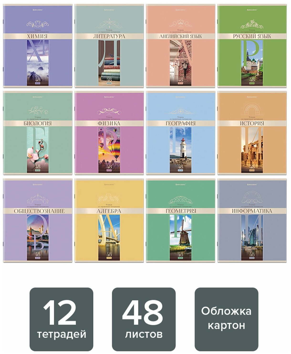 Комплект предметных тетрадей Delight 48 листов клетка линия 12 штук Brauberg 404606