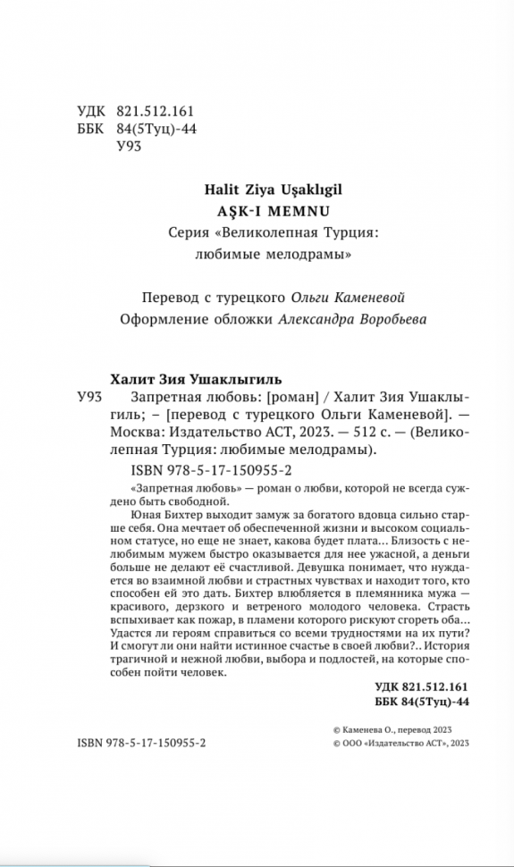 Книга: Запретная любовь (Халит Зия Ушаклыгиль); Издательство АСТ, 2023
