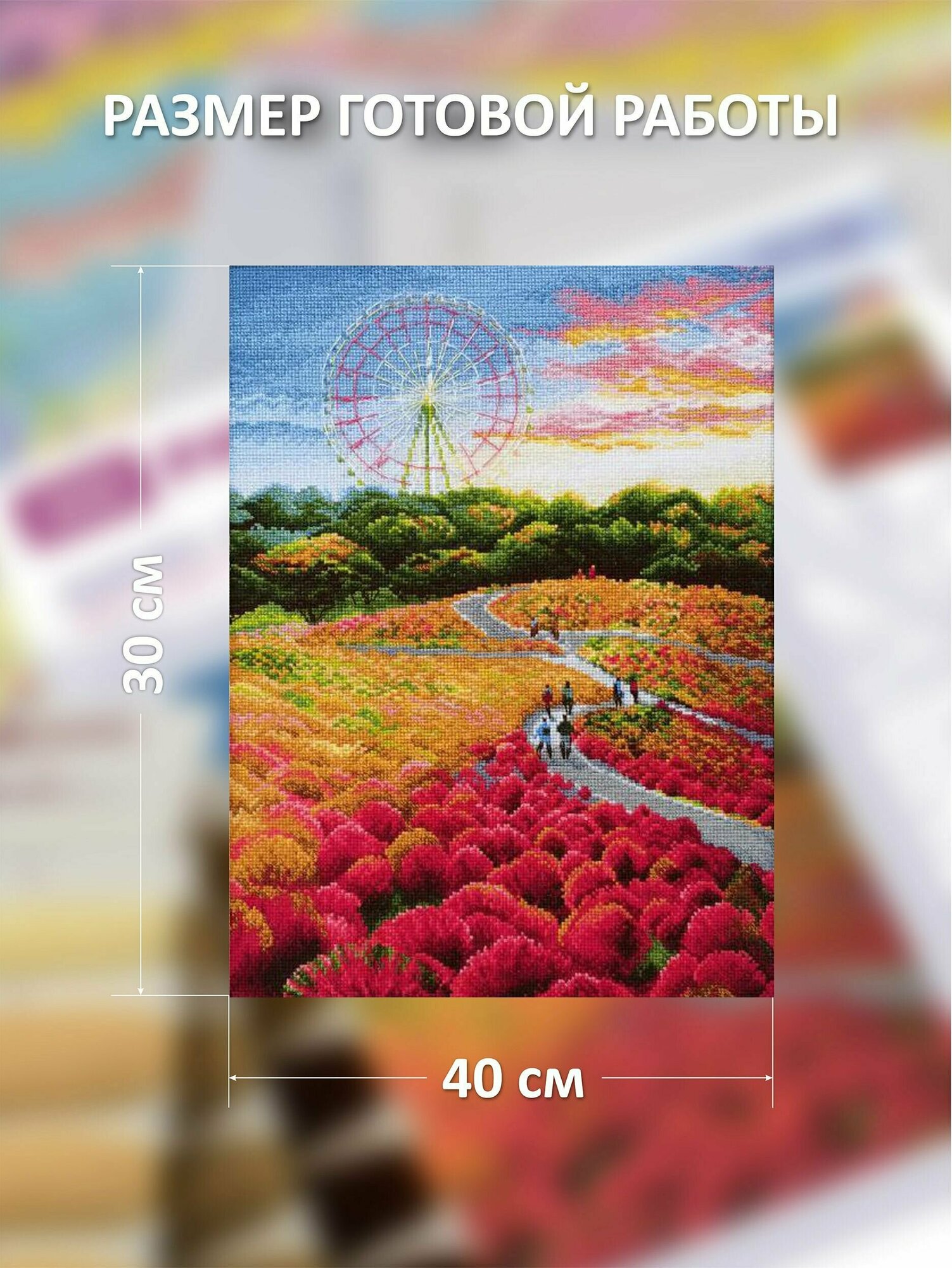 Для сюжета 'Парк Хитачи' используются шерстяные мулине – они позволяют плотно зашивать сетчатую канву 14 каунта, стежки получаются матовыми, достаточно объемными. Следуйте инструкции, выкладывайте равномерные стежки, и постепенно из-под вашей иглы начнет 'проступать' картина со сложной гаммой, плавными цветовыми переходами.