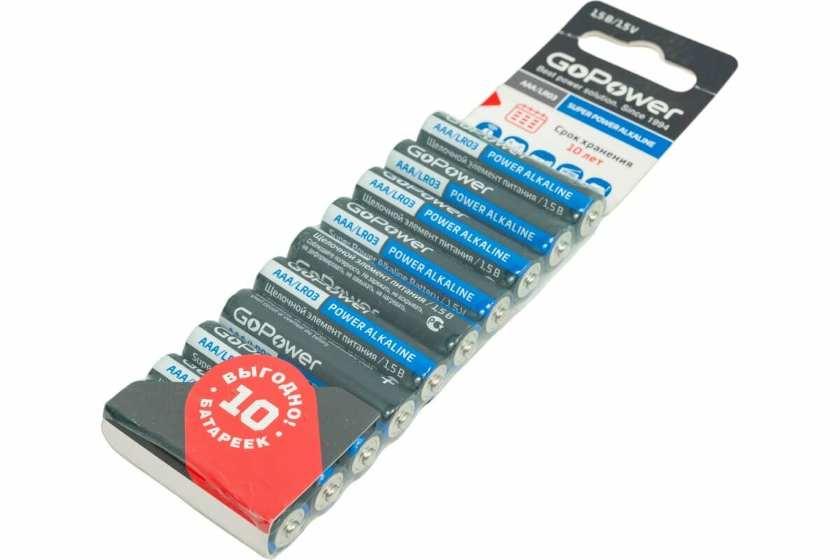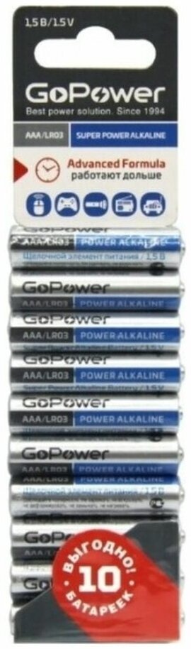 Батарейка GoPower 00-00019864 AAA BL10 Alkaline 1.5V (10/60/360) LR03