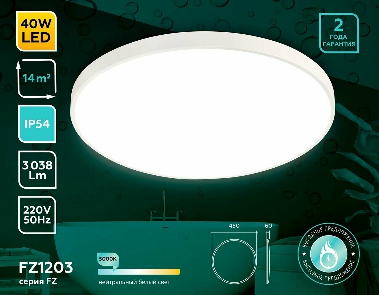 | Номенклатура | FZ1203 WH белый IP54 40.5W 5000K D450*60 (без ПДУ) |