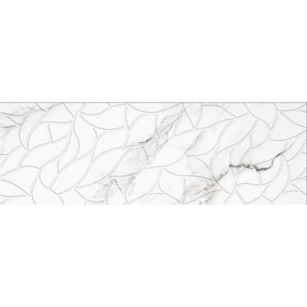 Керамическая плитка Colortile Carara Bianco Era настенная 30х90 см под мрамор, геометрический орнамент с 3D эффектом, цвет белый.