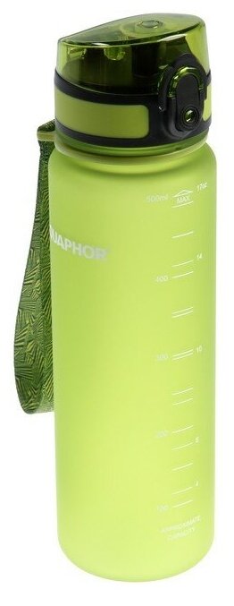 | Особенности | Матовое бархатистое покрытие бутылки приятно на ощупь, широкий ремешок дополнительно фиксирует бутылку во время использования, защитный колпачок не даст воде пролиться в сумке. |