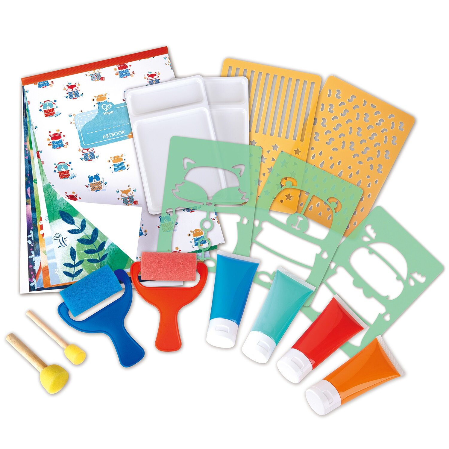 Набор для рисования Hape E1067_HP Игровой набор для рисования губкой и валиками по трафаретам