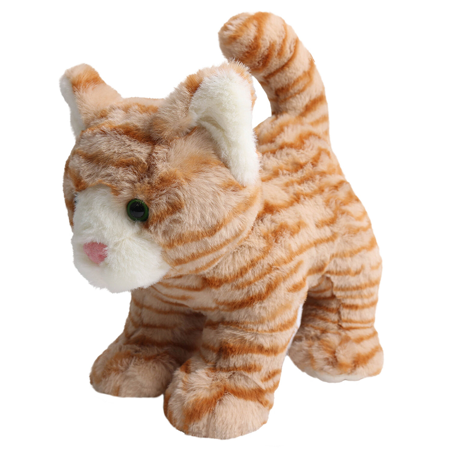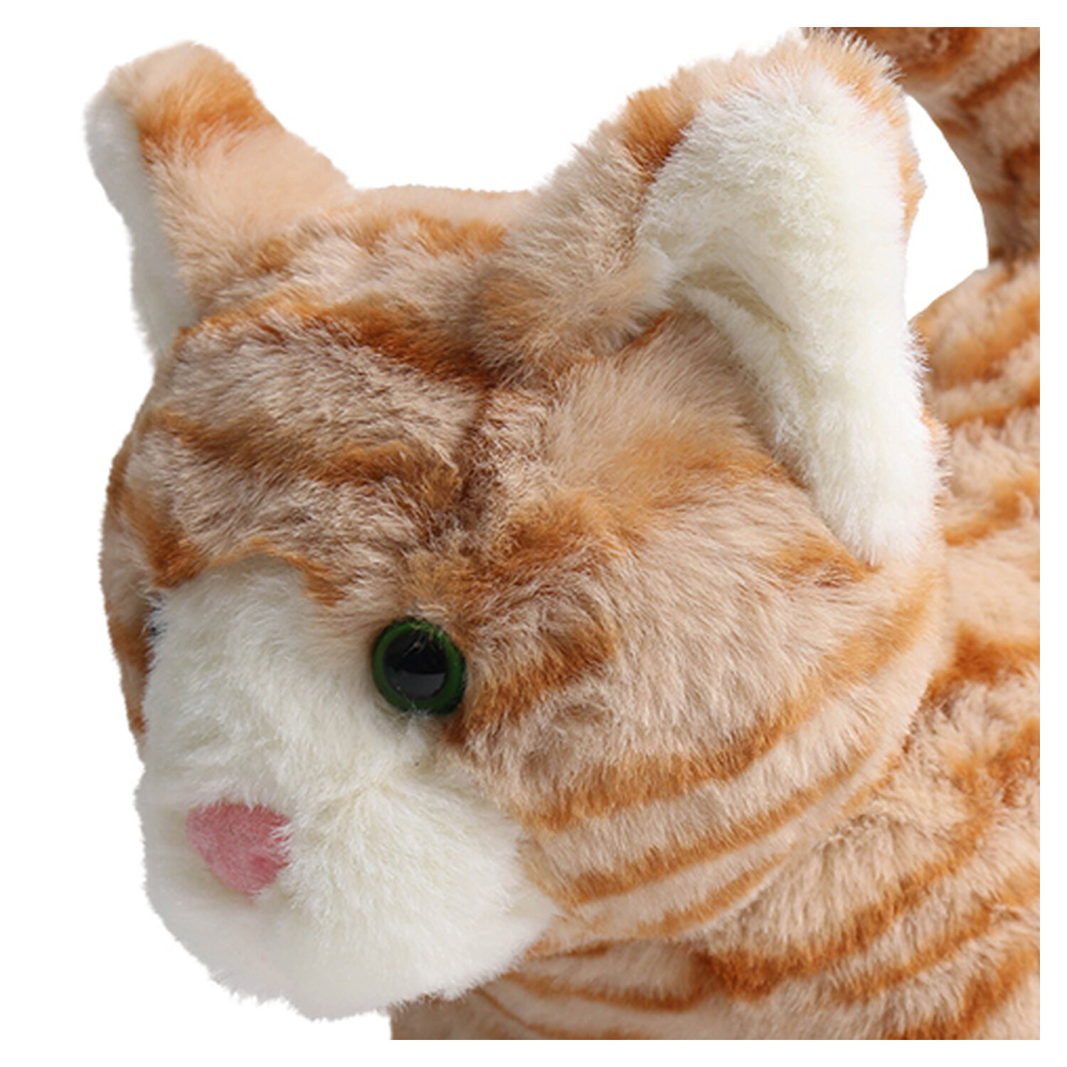 Мягкий плюшевый рыжий полосатый котёнок обязательно понравится ребенку. Забавная мордашка, маленькие лапки, игривый хвостик и умилительный внешний вид игрушки призывает к заботе и нежности в поведении ребёнка. Игрушка котика реалистична, а на ощупь она приятная и мягкая.