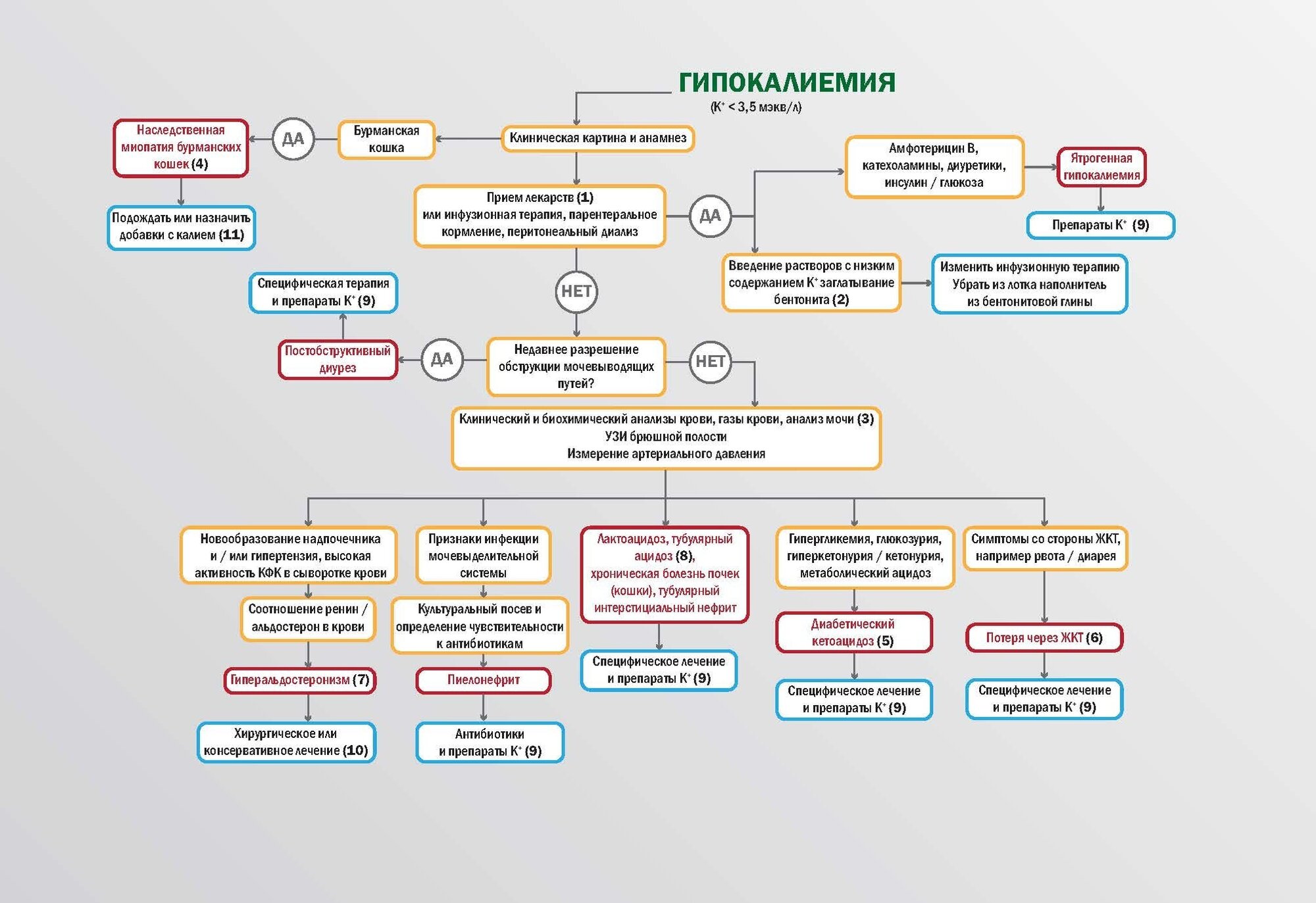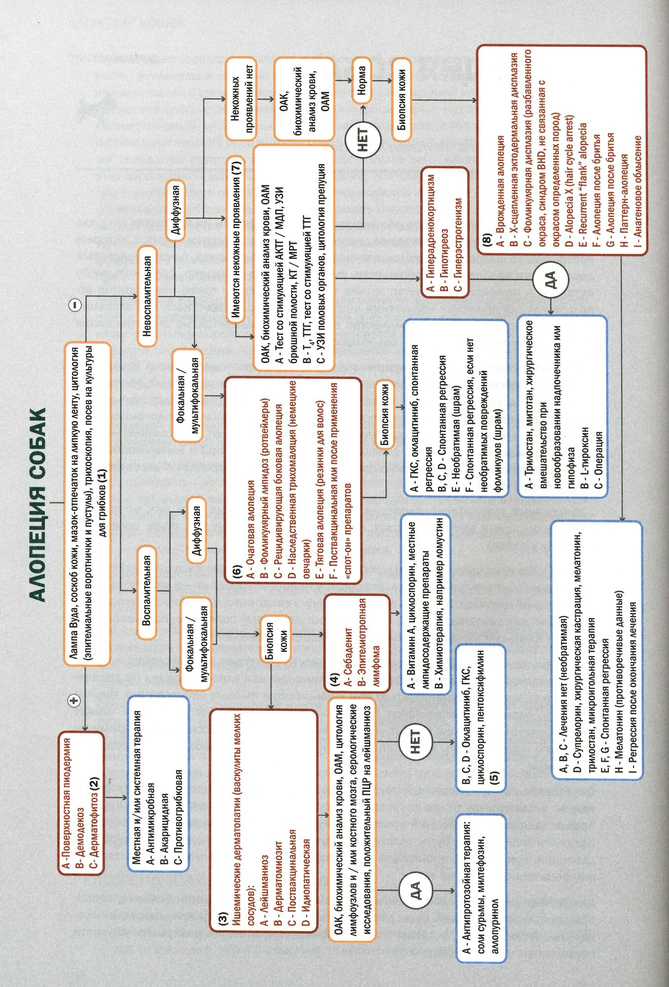 Это издание включает в себя две полезные и инновационные функции: цветовые коды и ссылки для получения дополнительной информации внутри алгоритма. Желтый цвет указывает на диагностический путь, красный - на диагноз, а синий - на терапию; это позволяет ветеринару ориентироваться в диагностическом лабиринте, чтобы выбрать наиболее подходящую терапию. Внутри красных прямоугольников можно быстро определить список дифференциальных диагнозов для каждой проблемы. Следуя желтым маркерам, каждый может понять, как достичь этих диагнозов и оптимизировать протокол диагностики. Примечания, связанные с алгоритмами ссылками, содержат более подробную информацию о конкретном диагностическом исследовании, конкретном заболевании или рекомендуемой терапии.