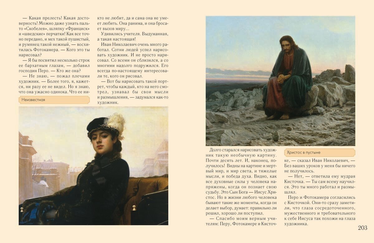 Можно с уверенностью сказать, что каждая история в этой книге – своего рода притча. Ее можно много раз читать и по-разному понимать. Во всяком случае материал, который предложен маленькому читателю, вводит его в чудесную атмосферу творчества, и она поможет ему смотреть на мир другими глазами – глазами человека творческого. Наша книга будет интересна как детям, так и взрослым, которые смогут помочь малышам лучше понять картины художников. Реалии прошлого, отраженные на картинах художника, дадут хороший материал для учащихся творческих студий, для кружков изобразительного искусства, для преподавателей школ и воспитателей детских садов.