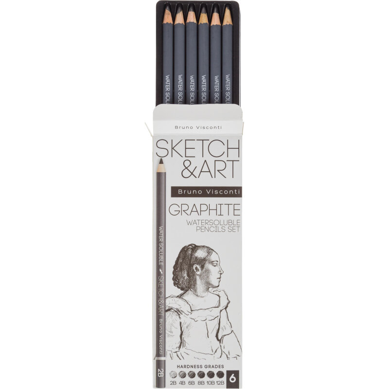 Набор чернографитных акварельных карандашей Sketch&Art 2B-4B-6B-8B-10B-12B 6 штук Bruno Visconti