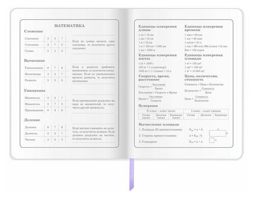Предназначен для учащихся начальных классов. Интегральная обложка из экокожи надежно защищает бумагу и долго сохраняет привлекательный внешний вид, а тиснение фольгой придает изделию оригинальность. Внутренний блок содержит 48 листов и состоит из офсетной белой бумаги плотностью 70 г/м2. В справочном материале собраны основные подсказки для учащихся. Для удобства пользования дневник снабжен закладкой-ляссе.