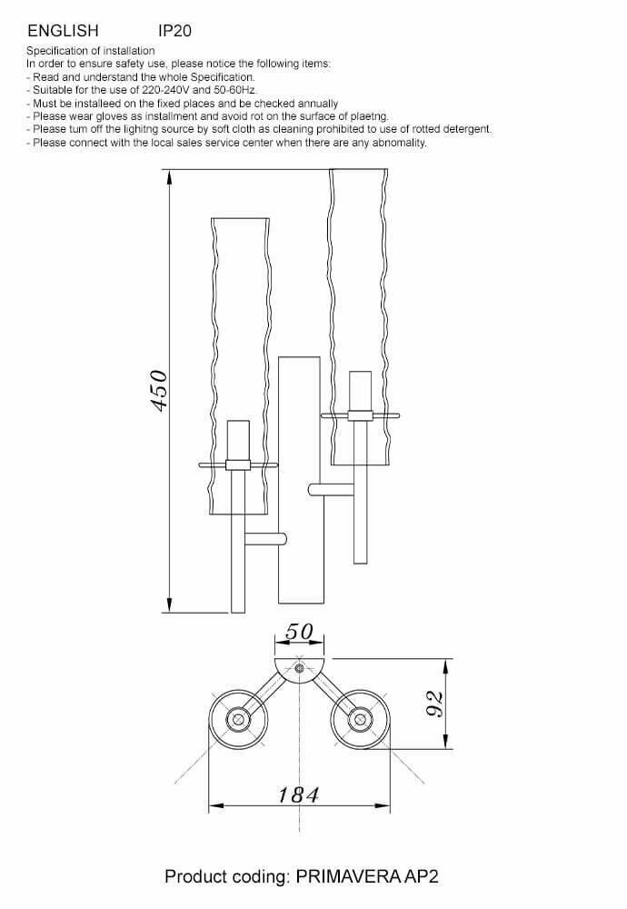 Модель светильника Primavera AP2 Gold, выполненная в стиле модерн. Цвет светильника золотой. Основной состав, из которого выполнена конструкция – металл. Тип используемого цоколя G9. Потребляемая мощность 60Вт. Степень пыле-влагостойкости IPIP20. Страна производства – Испания.