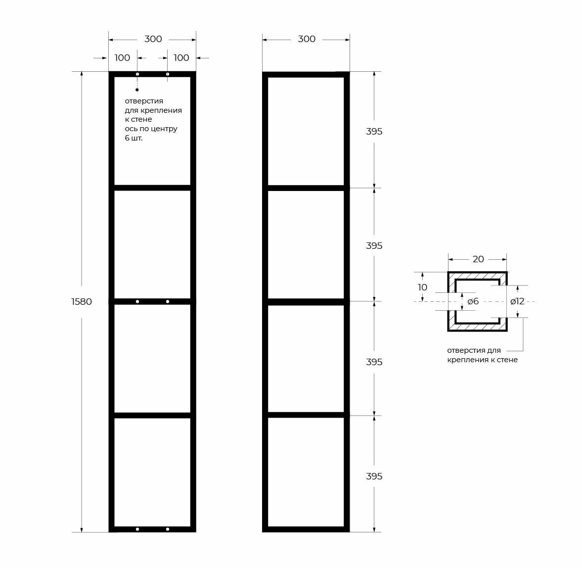 - Размеры (ШхВхГ): 300х1580х300 мм.