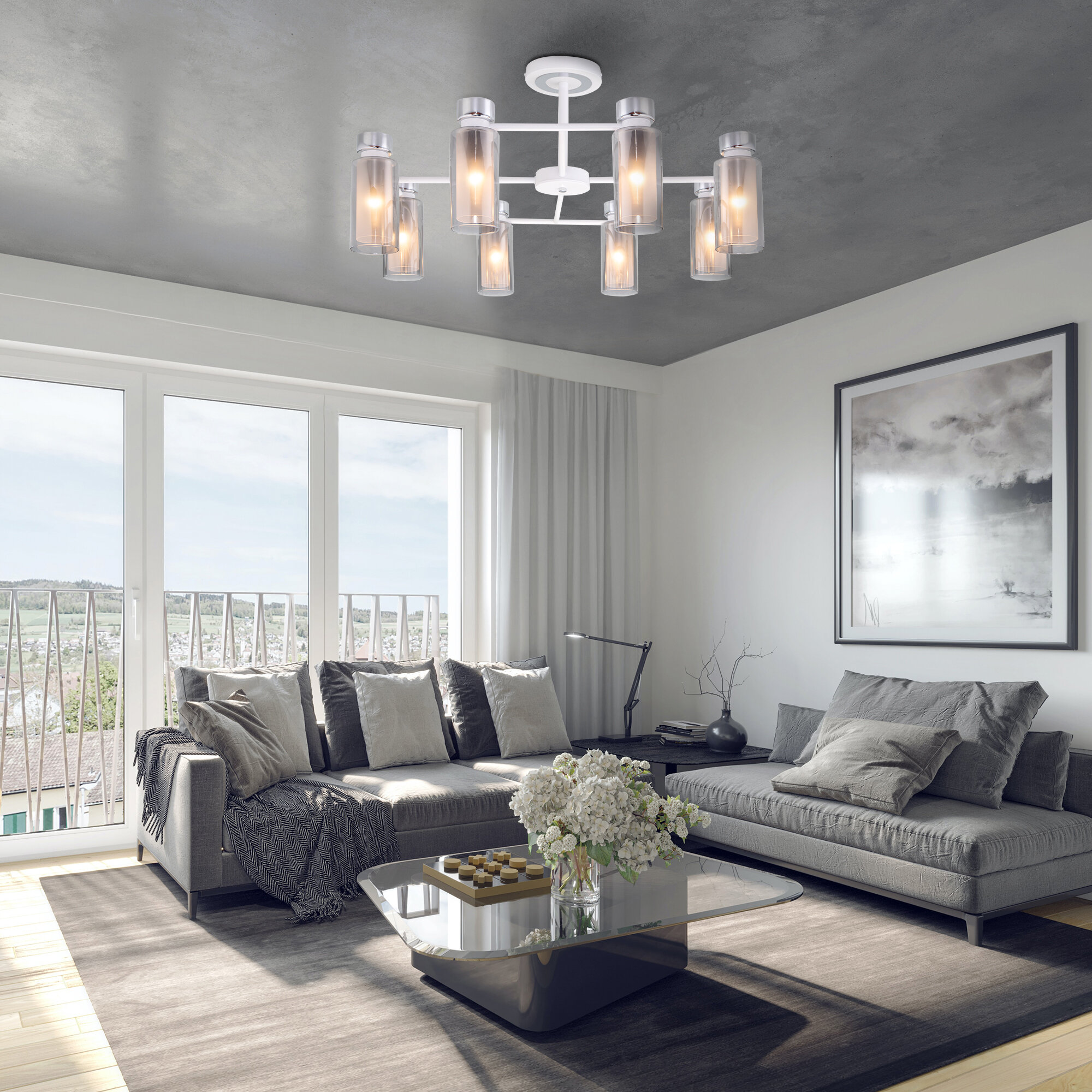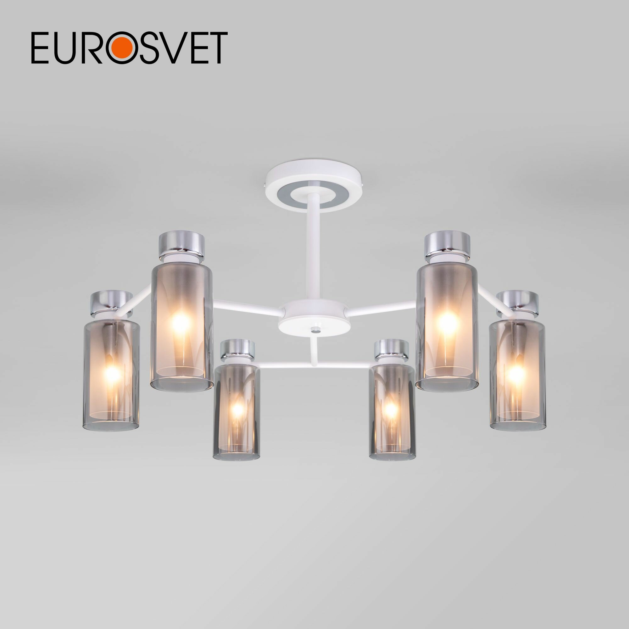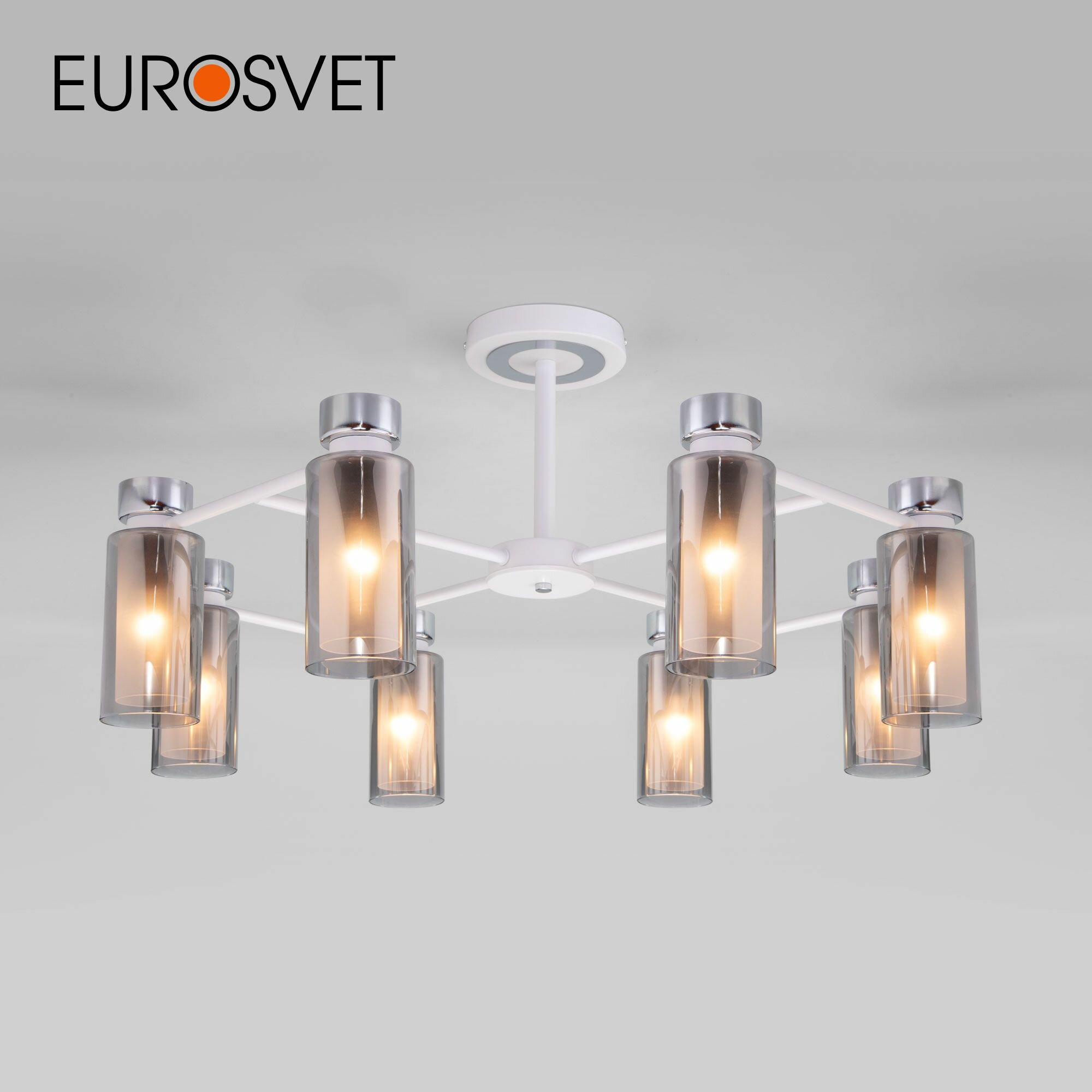 Потолочная люстра Евросвет Amado 70115/8 белого цвета с стеклянными дымчатыми плафонами предназначена для создания основного освещения в современных и классических интерьерах, подходит для различных типов помещений и рассчитана на площадь освещения 24 кв. м. Дизайнерская люстра оснащена патронами с цоколем Е14, которые рассчитаны на максимальную мощность ламп 15 Вт. Лампочки в комплект не входят и докупаются дополнительно в зависимости от требуемой цветовой температуры (теплый, холодный свет). Люстра украшена эффектным декором из металла и дополнена выразительными стеклянными плафонами. Арматура изготовлена из высококачественного металла с надежным защитным покрытием. Серия светильников Amado представлена в черном и в белом цвете. Все модели из данной серии украшены плафонами из дымчатого и янтарного стекла. Серия Amado многофункциональна и включает в себя: подвесной светильник с 1 (арт. 600002676534) и с 3 (арт. 600002676535) плафонами, потолочную люстру на 6 (арт. 600002676201) и на 8 (арт. 600002676202) рожков.
