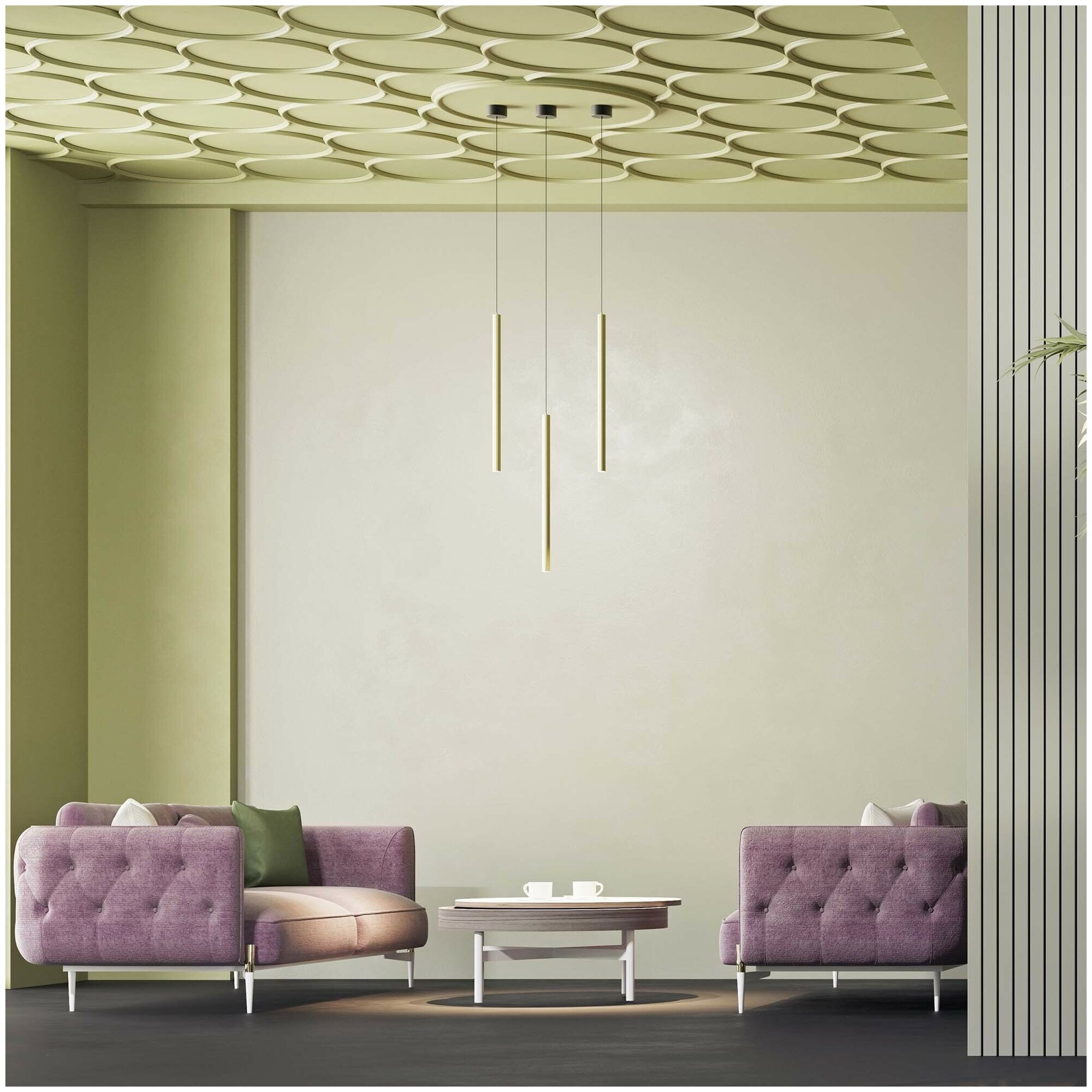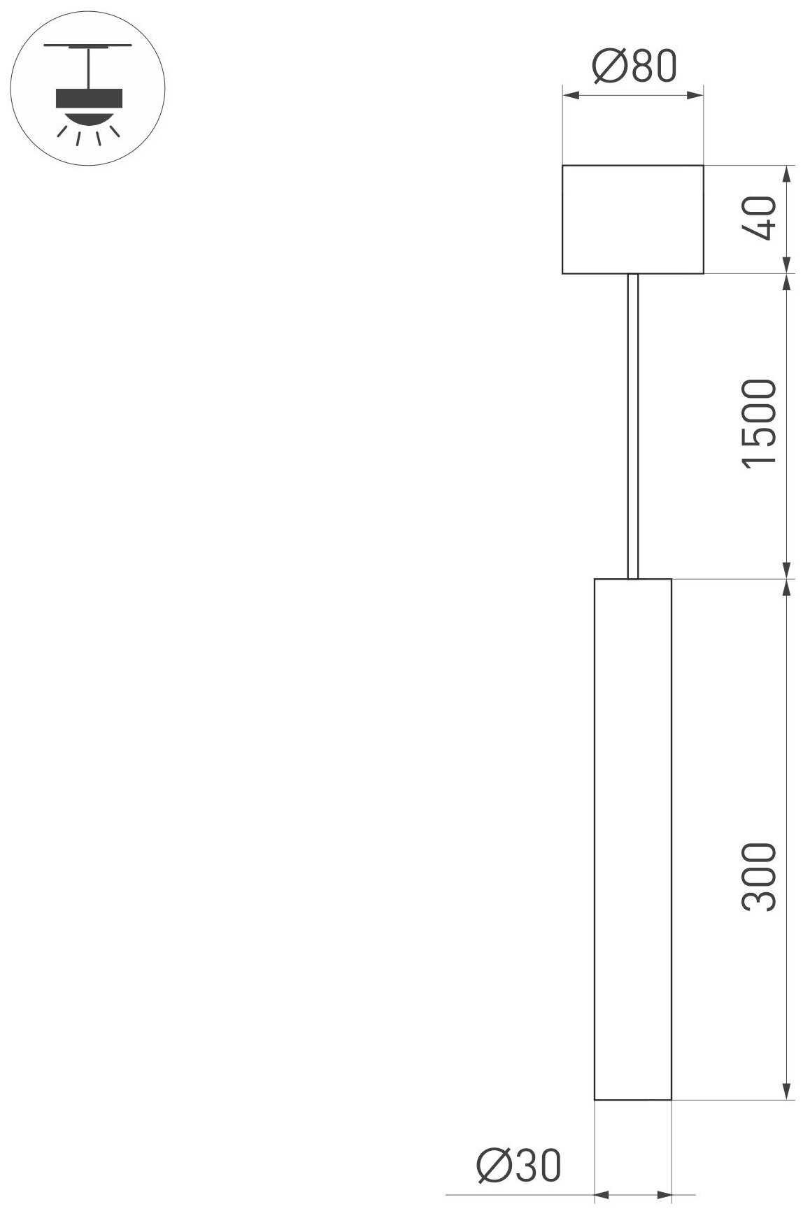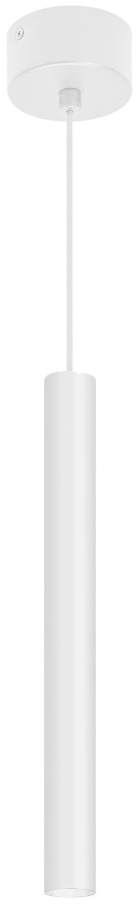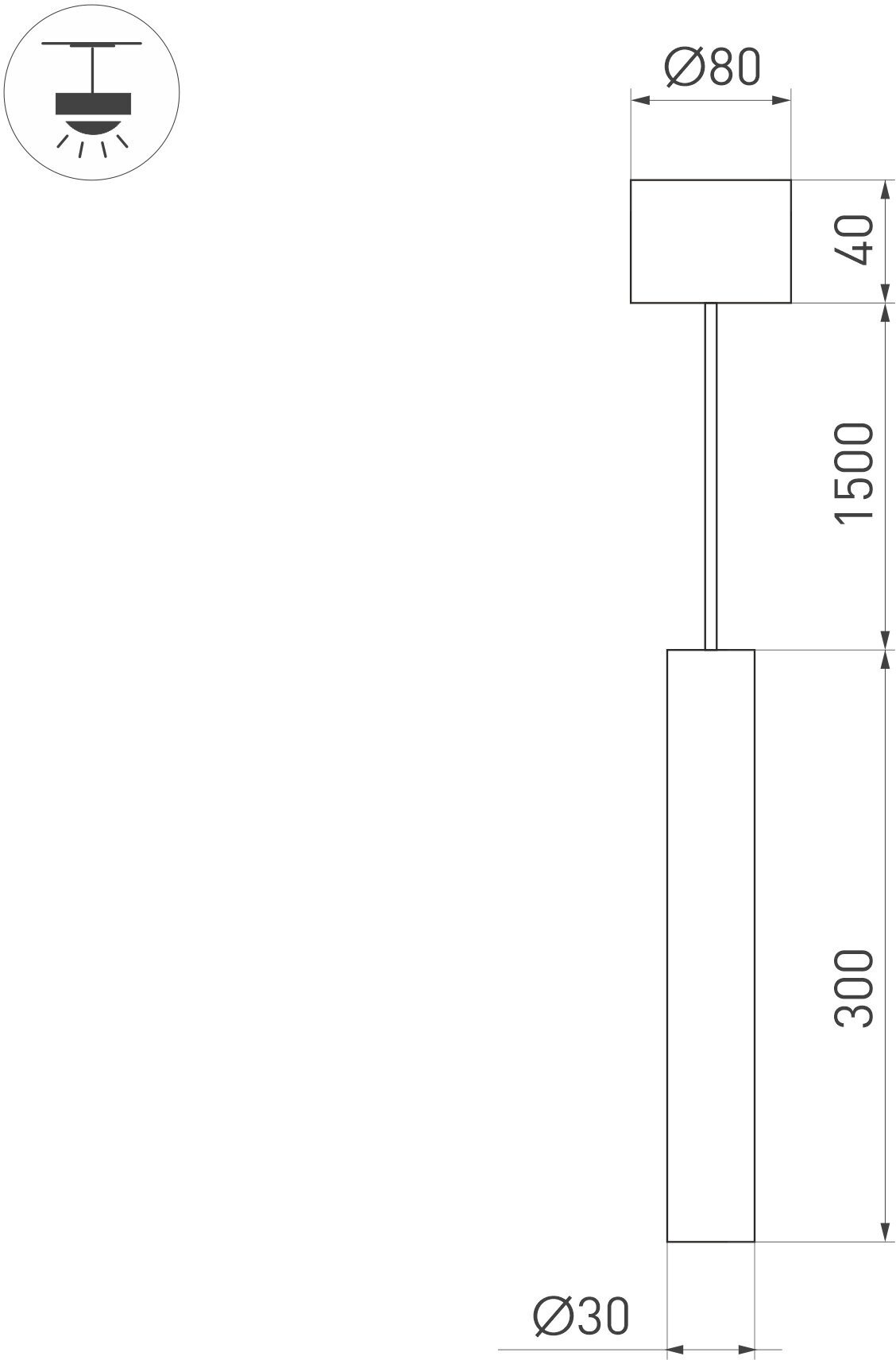 Подвесной светильник. Мощность 9 Вт, св. поток 561 лм, 64 лм/Вт, дневной 4000 K, CRI>90, угол 24°, напряжение питания 230 В. Белый круглый корпус из алюминия, рассеиватель PC, степень защиты IP20. Размер: диаметр 30 мм, длина 300 мм, размер чаши: диаметр 80 мм, высота 40 мм. Монтаж подвесной, длина подвеса 1500 мм. Драйвер 28-42 В, 200 мА, пульсация
