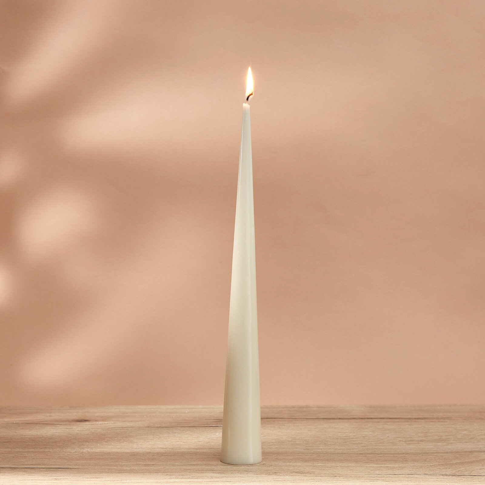 Парафиновая свеча от Cozy Home светло-бежевого цвета высотой 37 см и диаметром 4,7 см.