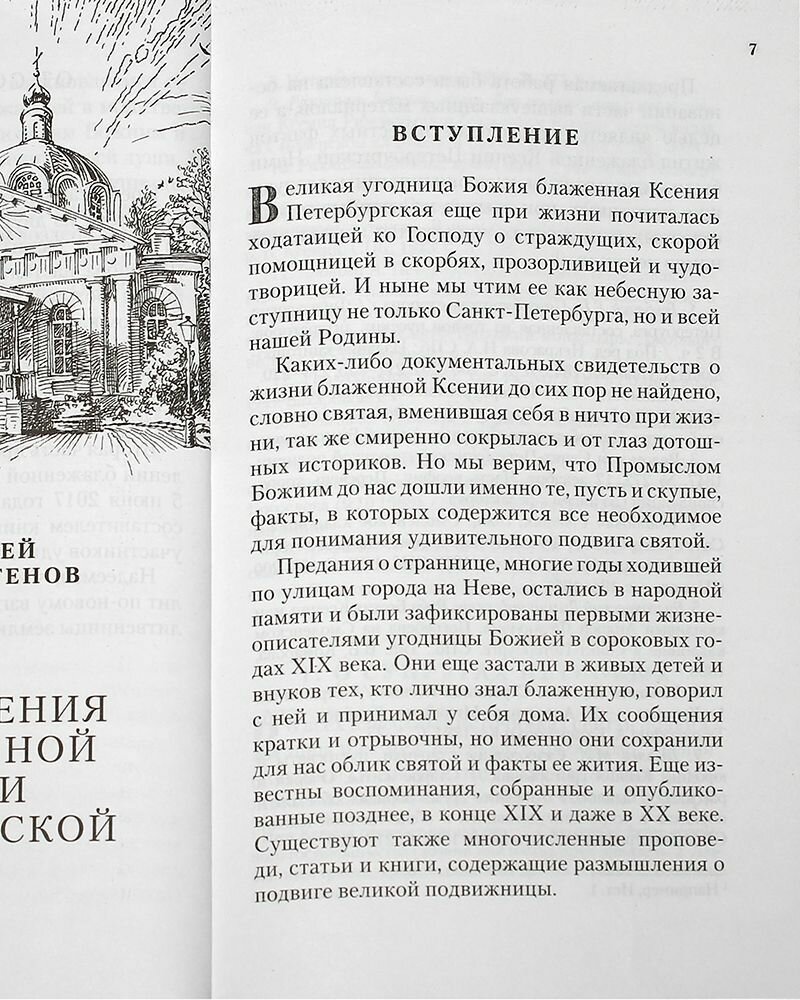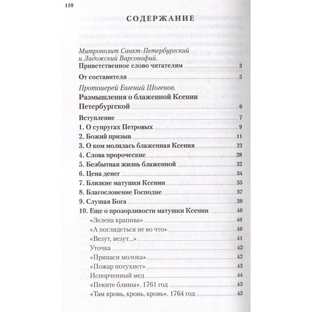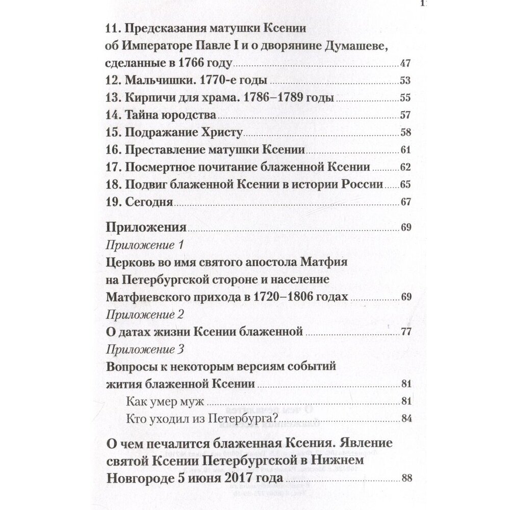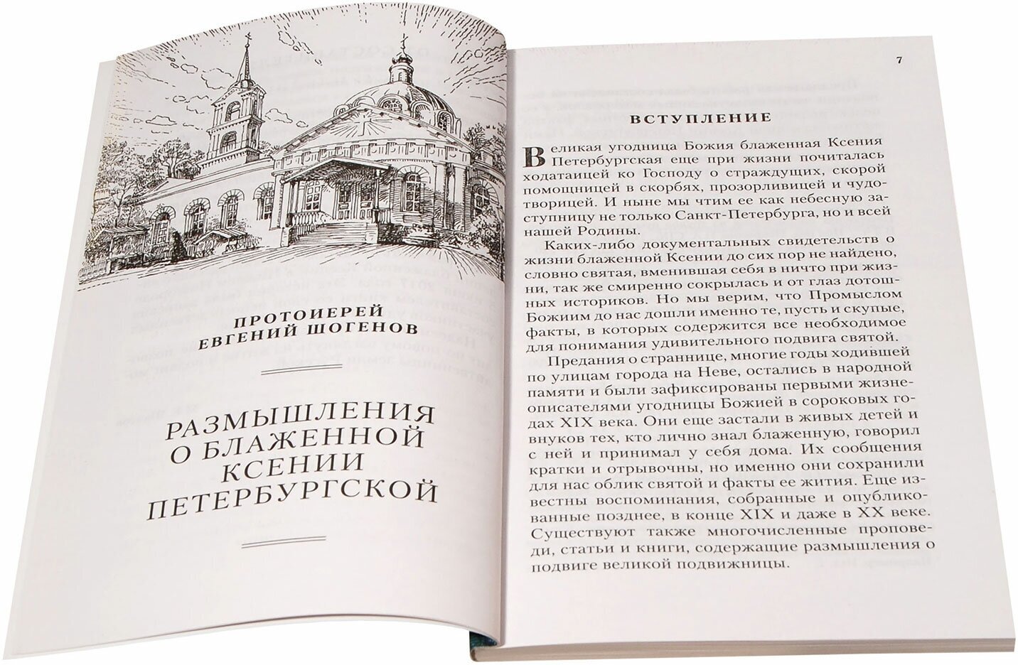 Эта книга состоит из двух частей. В первой части протоиерей Евгений Шогенов, настоятель храма в честь Смоленской иконы Божией Матери на Смоленском кладбище Санкт-Петербурга, попытался выстроить хронологию жизни святой Ксении Петербургской и извлечь скрытые смысла из того немногого, что известно о ней.