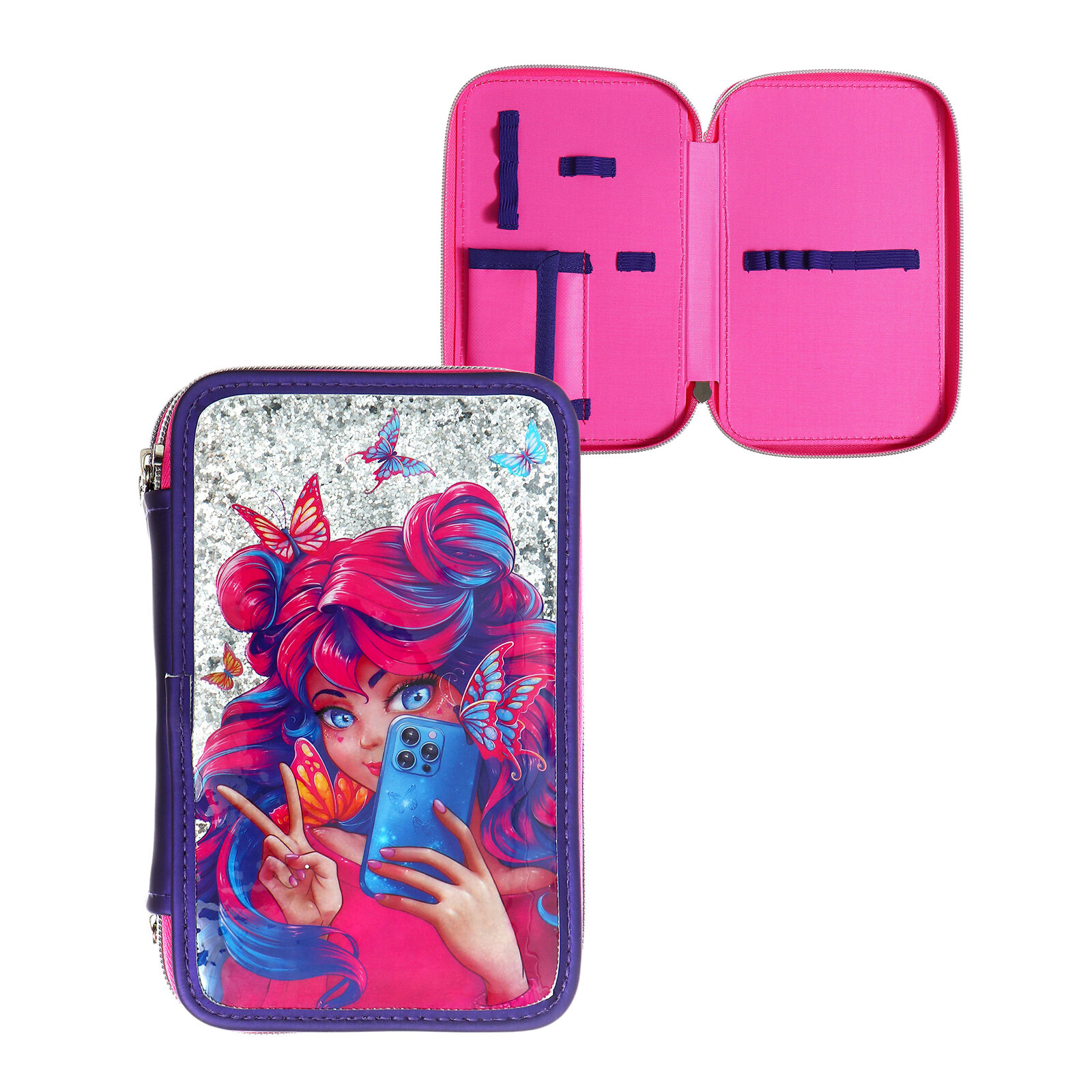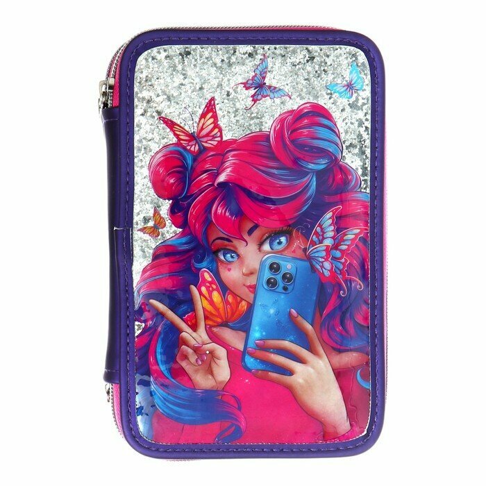 Пенал школьный (без наполнения, 13x20,5x7 см, глиттерная бумага, искусственная кожа, ПВХ, молния, полноцветная печать, ПЭТ-пакет).