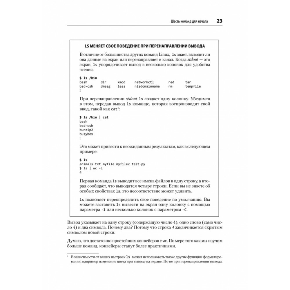 Перейдите на новый уровень работы в Linux! Если вы системный администратор, разработчик программного обеспечения, SRE-инженер или пользователь Linux, книга поможет вам работать быстрее, элегантнее и эффективнее. Вы научитесь создавать и запускать сложные команды, которые решают реальные бизнес-задачи, обрабатывать и извлекать информацию, а также автоматизировать ручную работу.