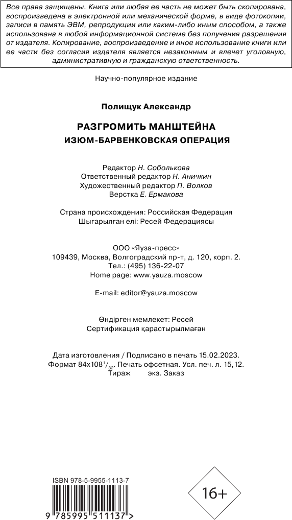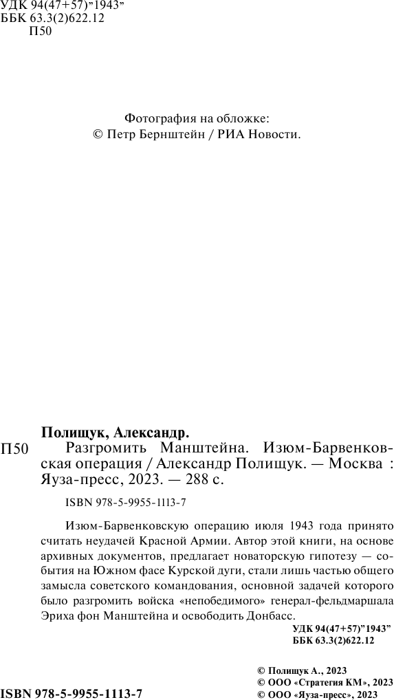 Разгромить Манштейна. Изюм-Барвенковская операция (Александр Полищук); Яуза-пресс ООО, 2023