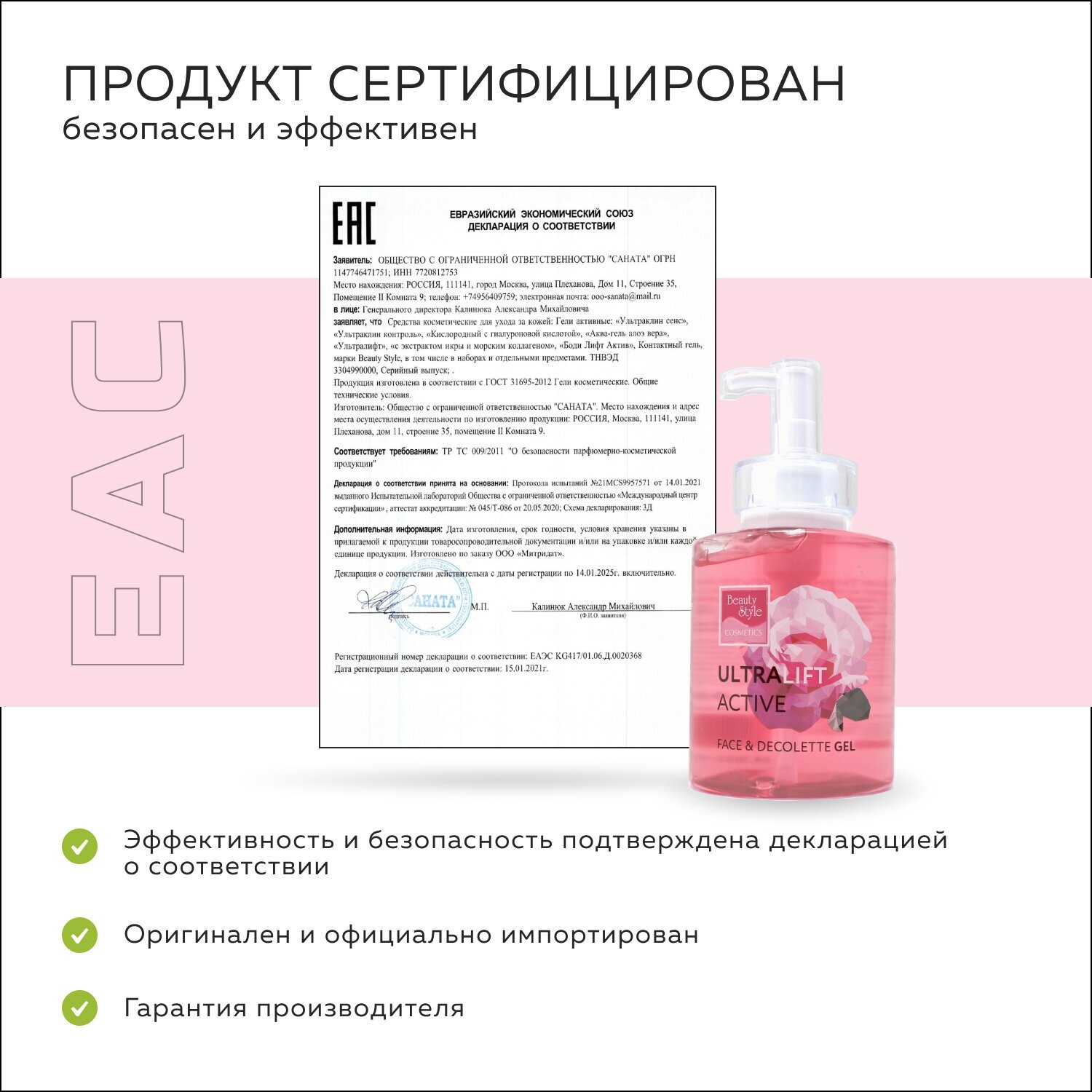 Эффект от применения геля Ультралифт: