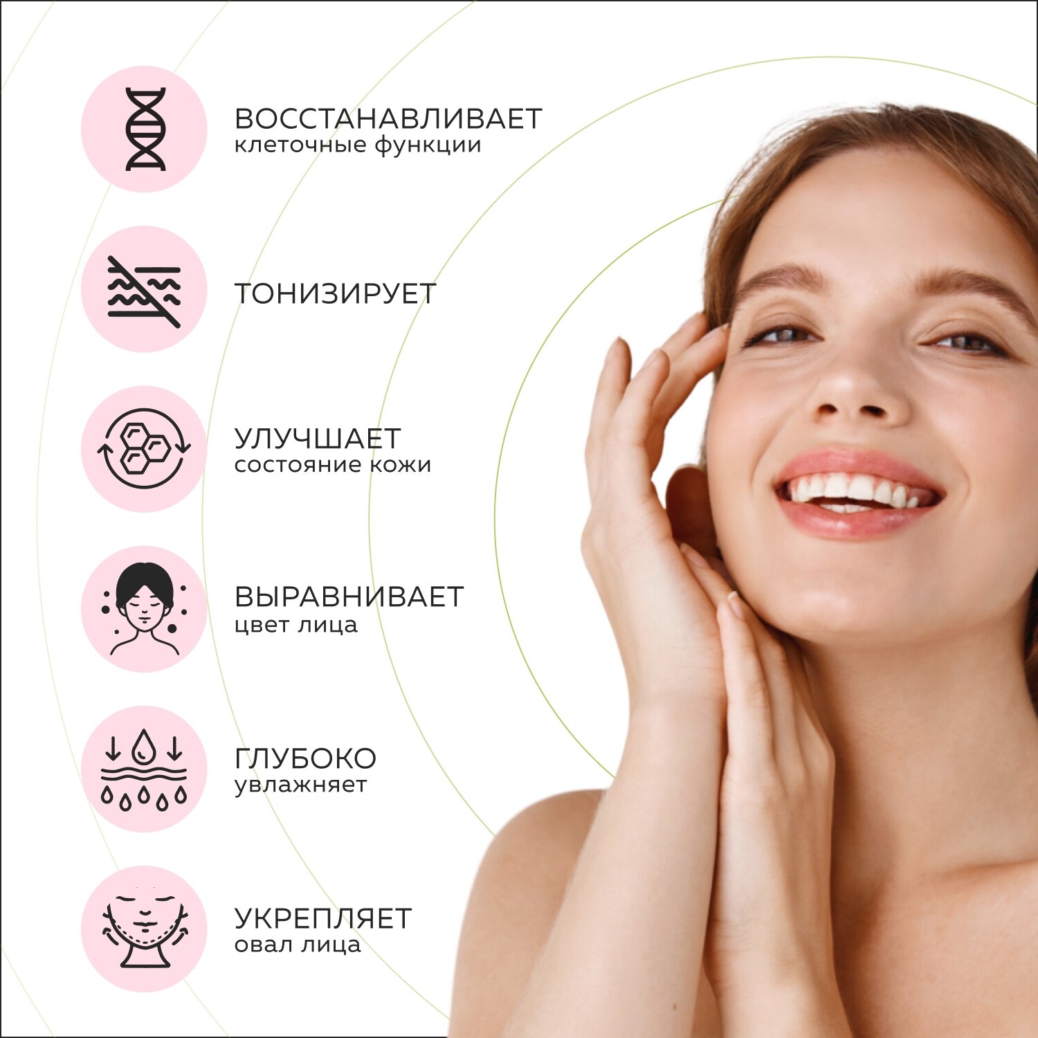Содержание органического кремния приводит к стимуляции выработки собственного коллагена и эластина клетками кожи, что дает долгосрочный, стойкий эффект омоложения.