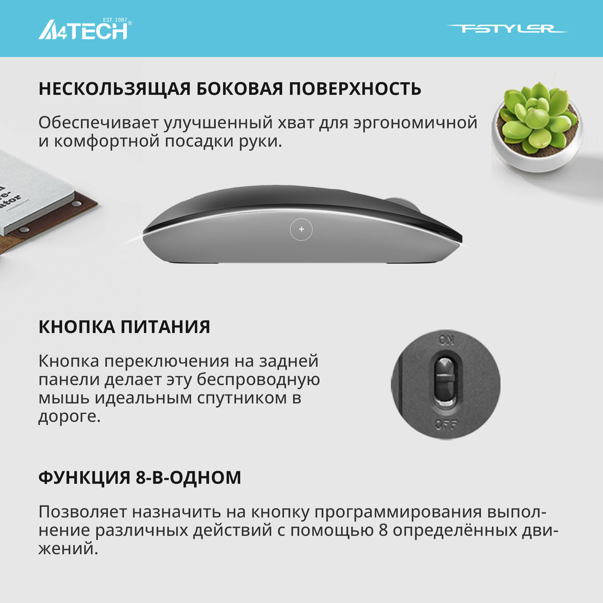 Мышь беспроводная A4Tech Fstyler FG20 2000dpi Wireless/USB Серый/Черный FG20 GREY