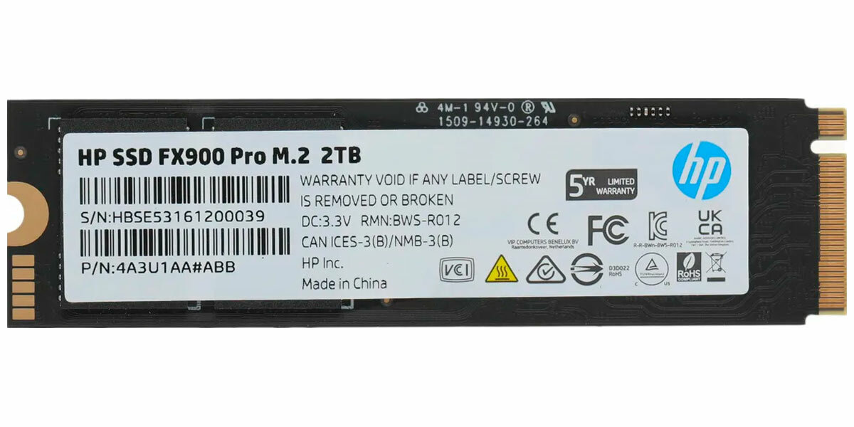 Внутренний SSD-накопитель HP FX900 Pro 2TB M2 2280 PCIe Gen4 x4 NVMe 3D NAND 1200 TBW Черный 4A3U1AA