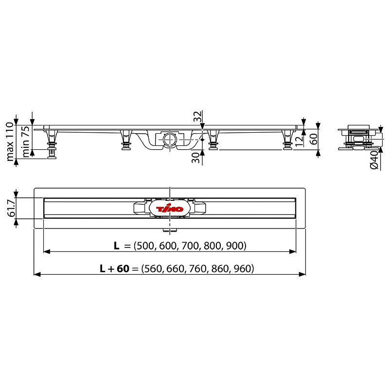 Душевой лоток Timo Eco 60 SP10-600 из пластика с порогами из нержавеющей стали