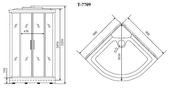 - Высота поддона: 150 мм.